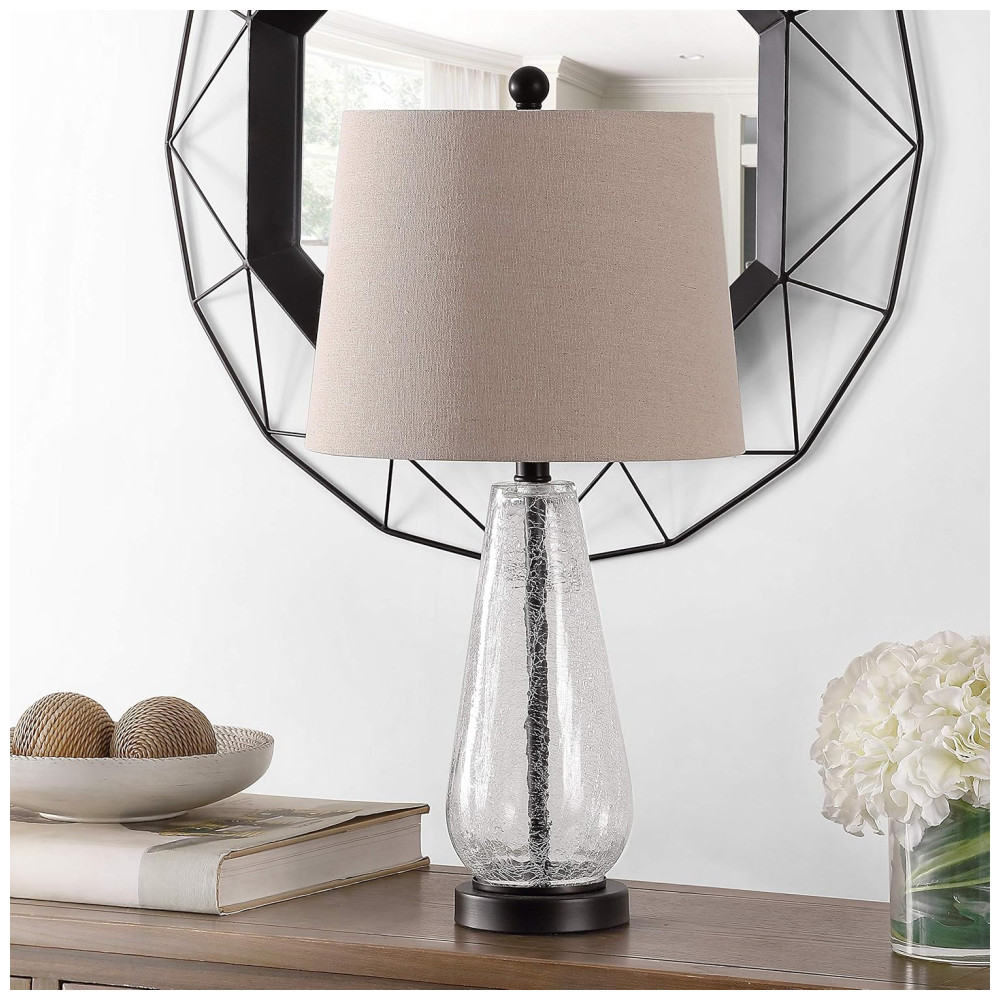 Abajur Luminária de Mesa em Vidro com 66 cm de Altura para Quarto Sala de Estar Escritório e Mesa de Cabeceira 100W Safavieh Branco