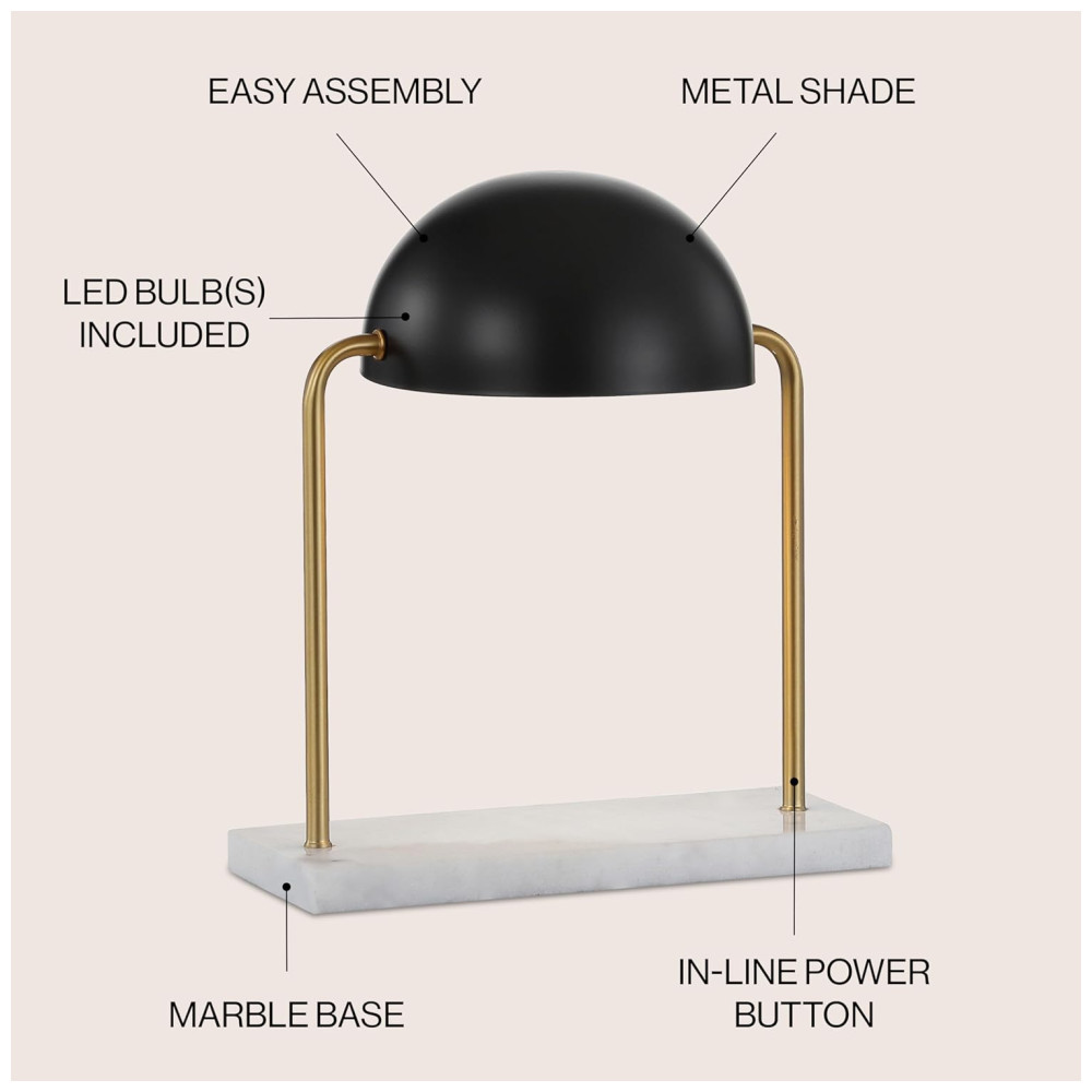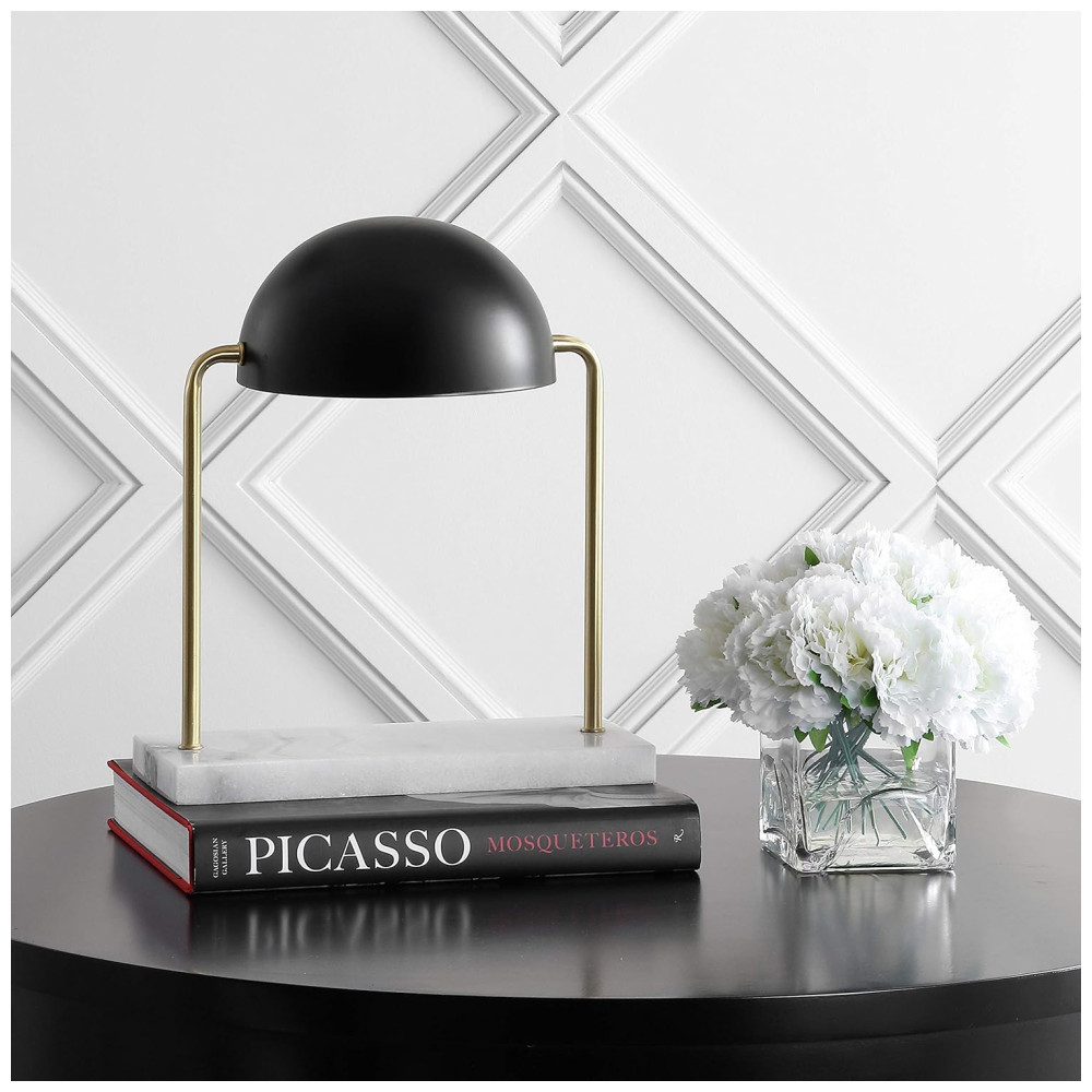 Abajur Luminária de Mesa Estilo Clássico com 34 cm de Altura e Base de Mármore para Quarto Sala de Estar e Escritório 110V 40W JONATHAN Y Preto e Dourado
