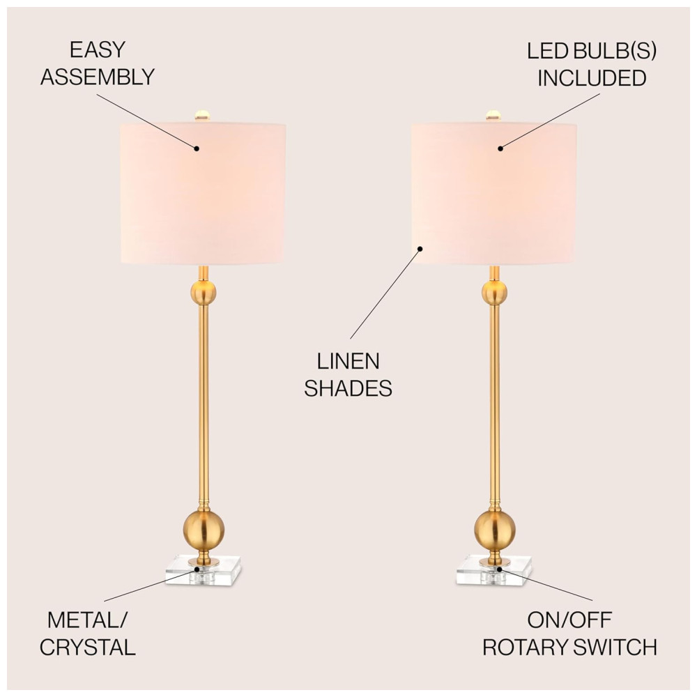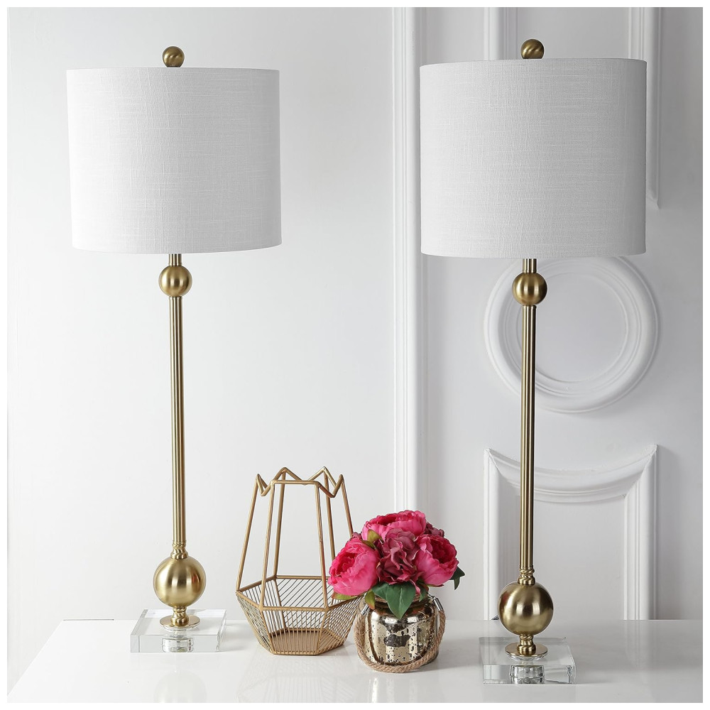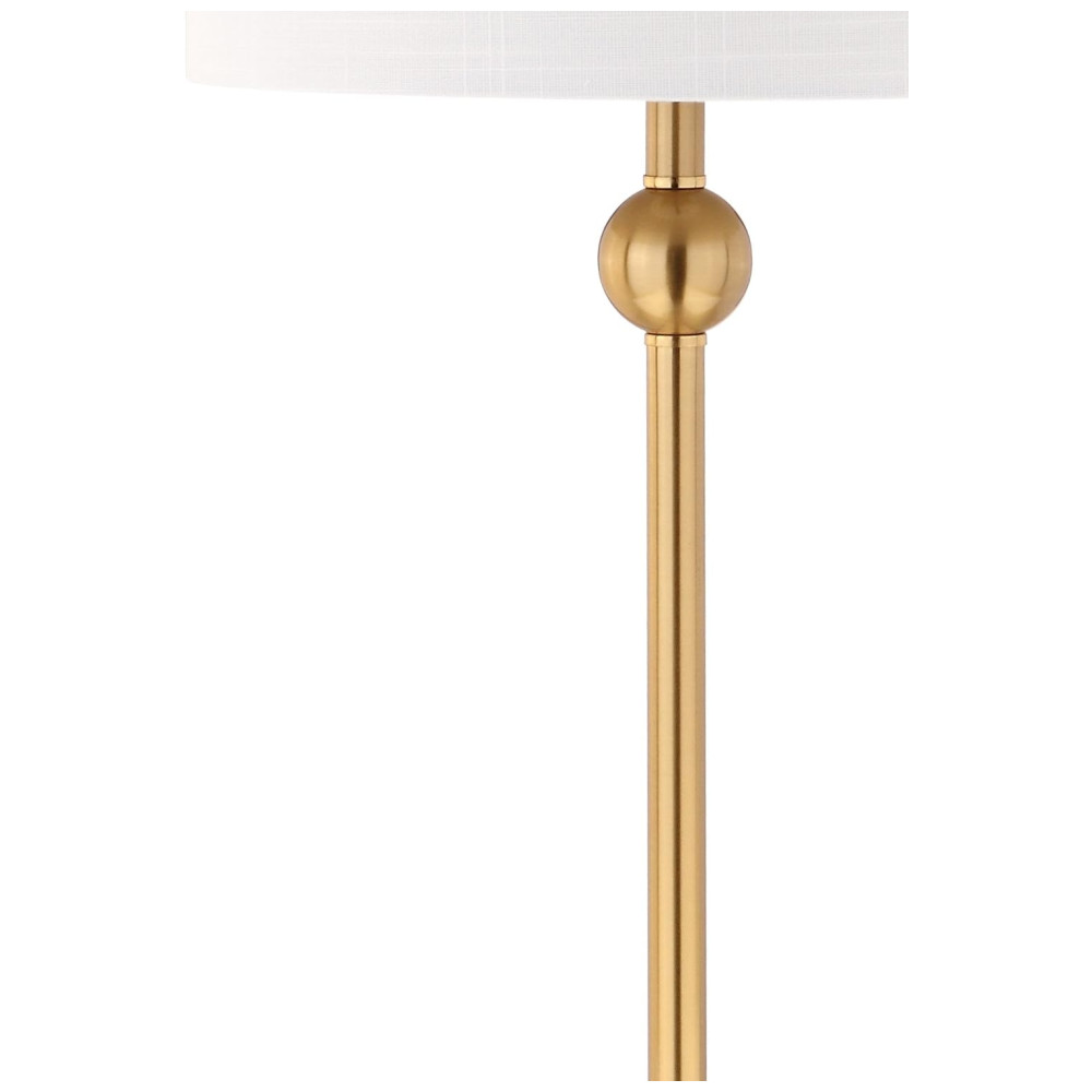 A luminária de mesa JONATHAN Y é uma peça versátil e elegante que combina metal e cristal com uma cúpula clássica de algodão branco. Sua base transparente, inspirada no design Sputnik em latão, adiciona um toque moderno e sofisticado a qualquer ambiente.