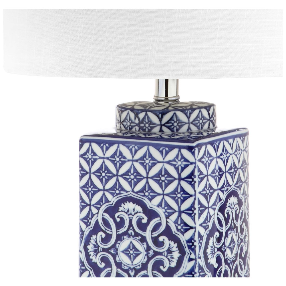 Cada design JONATHAN Y é criado com uma atenção rigorosa aos detalhes e utiliza apenas componentes da mais alta qualidade. Com sede no Soho, Nova York, o designer Jonathan e sua equipe talentosa oferecem decoração de alto padrão e acessível. A influência oriental é evidente na base de cerâmica azul e branca, pintada à mão. O abajur é confeccionado em algodão 100% e tem formato de tambor.