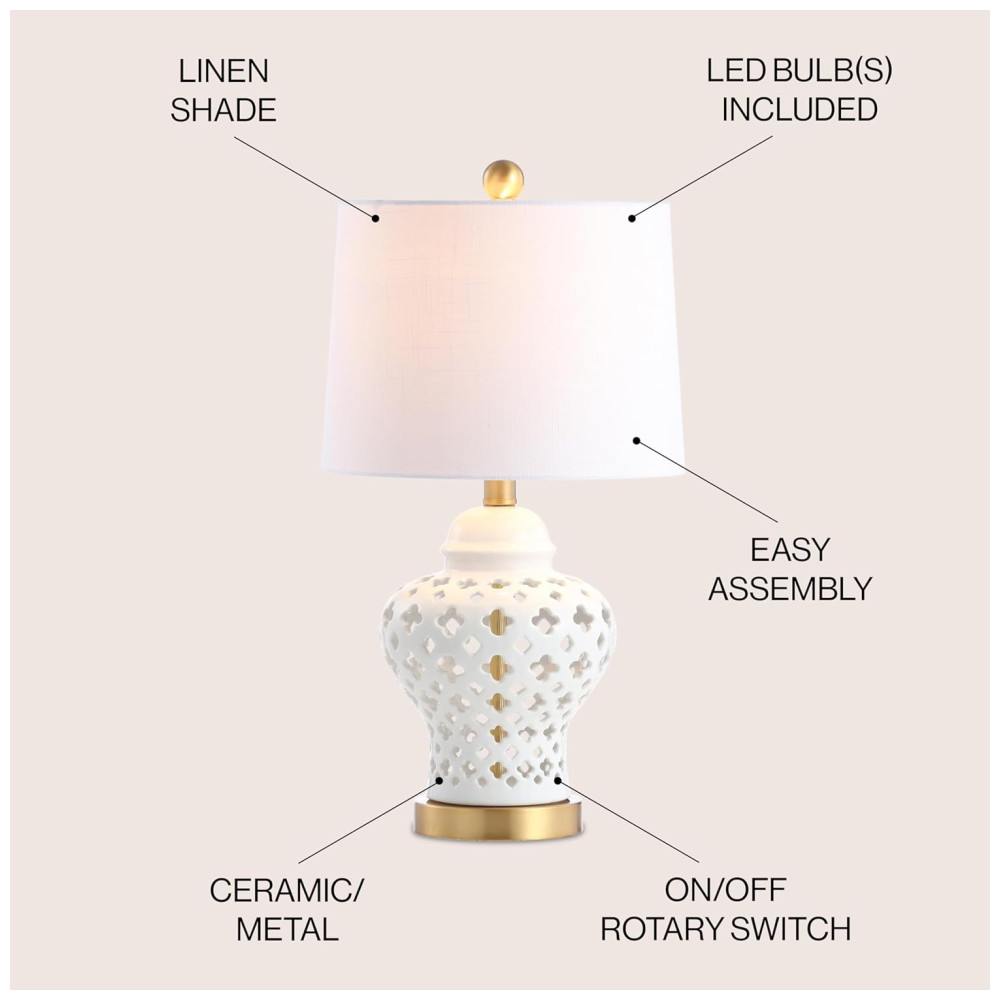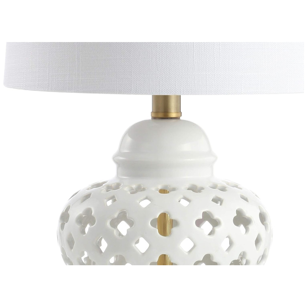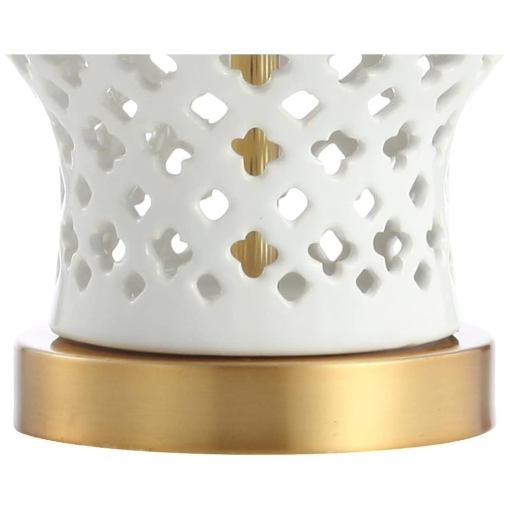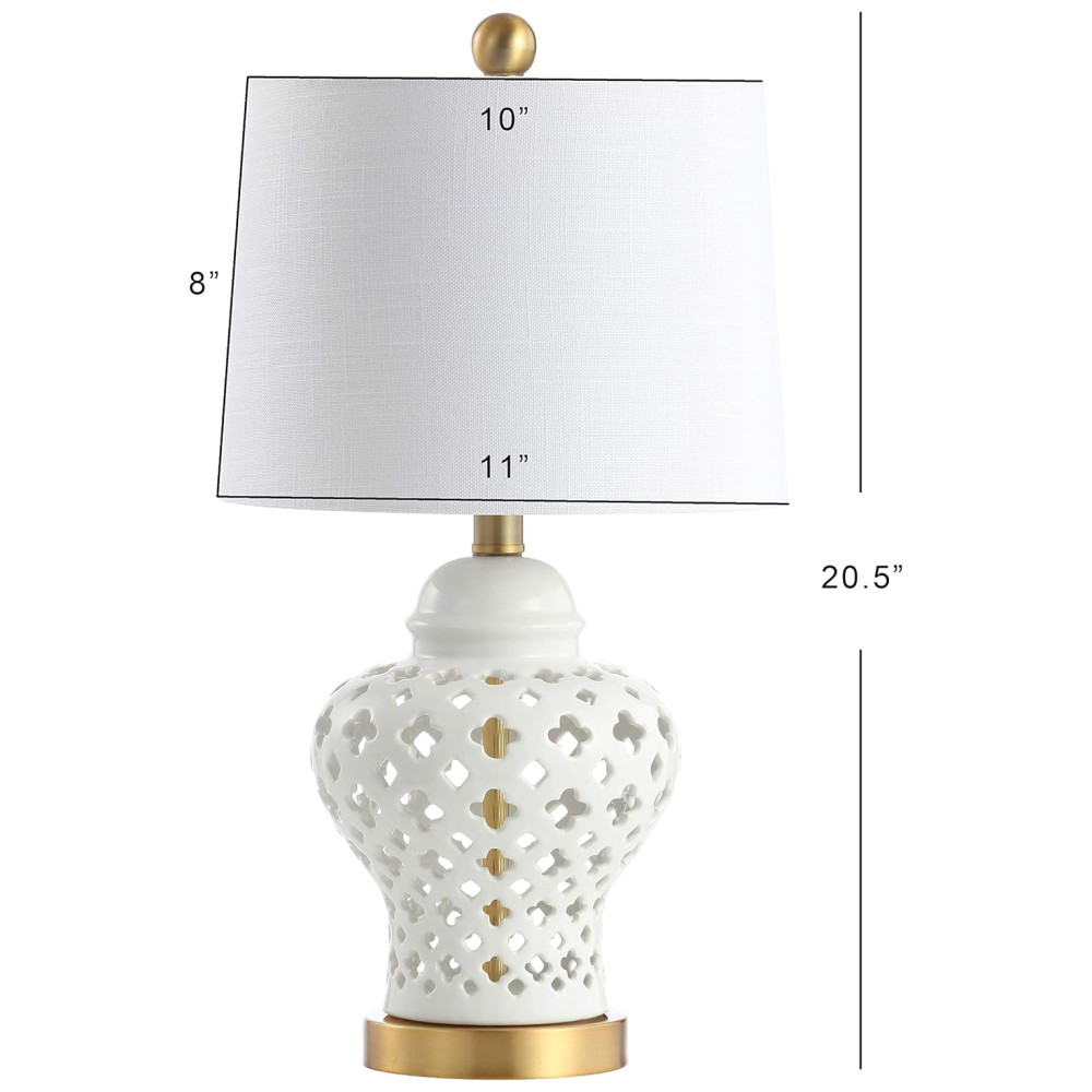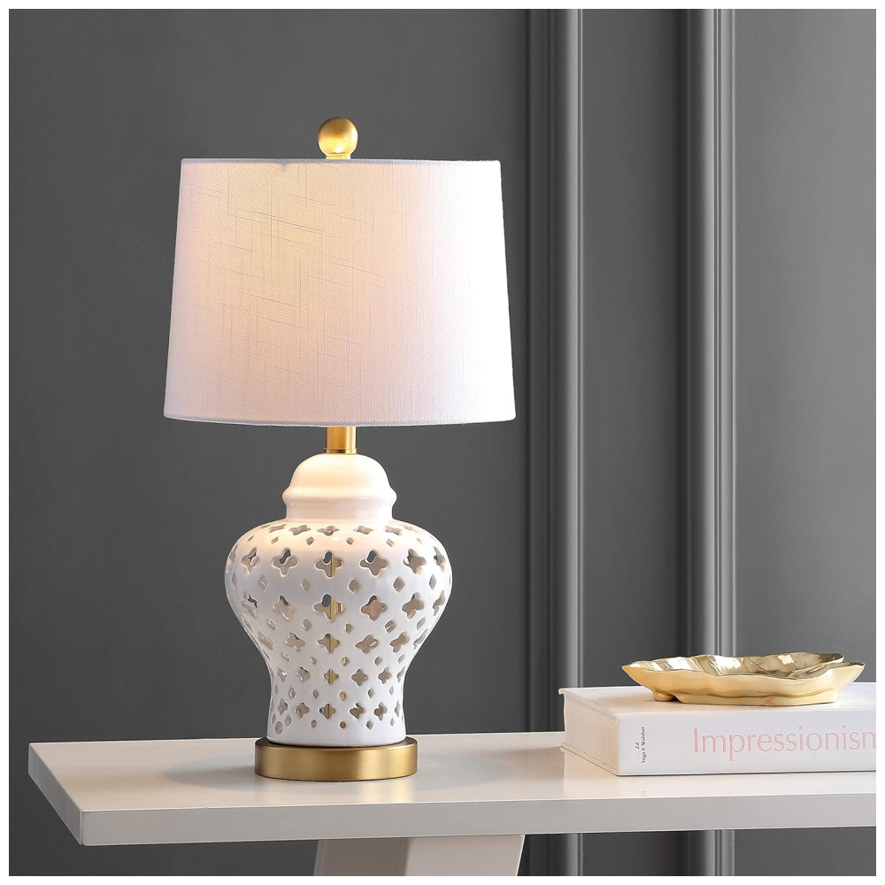 Abajur Luminária de Mesa Jarra de Gengibre Perfurada em Cerâmica com 52 cm de Altura para Quarto Sala de Estar e Escritório 110V 40W JONATHAN Y Branco