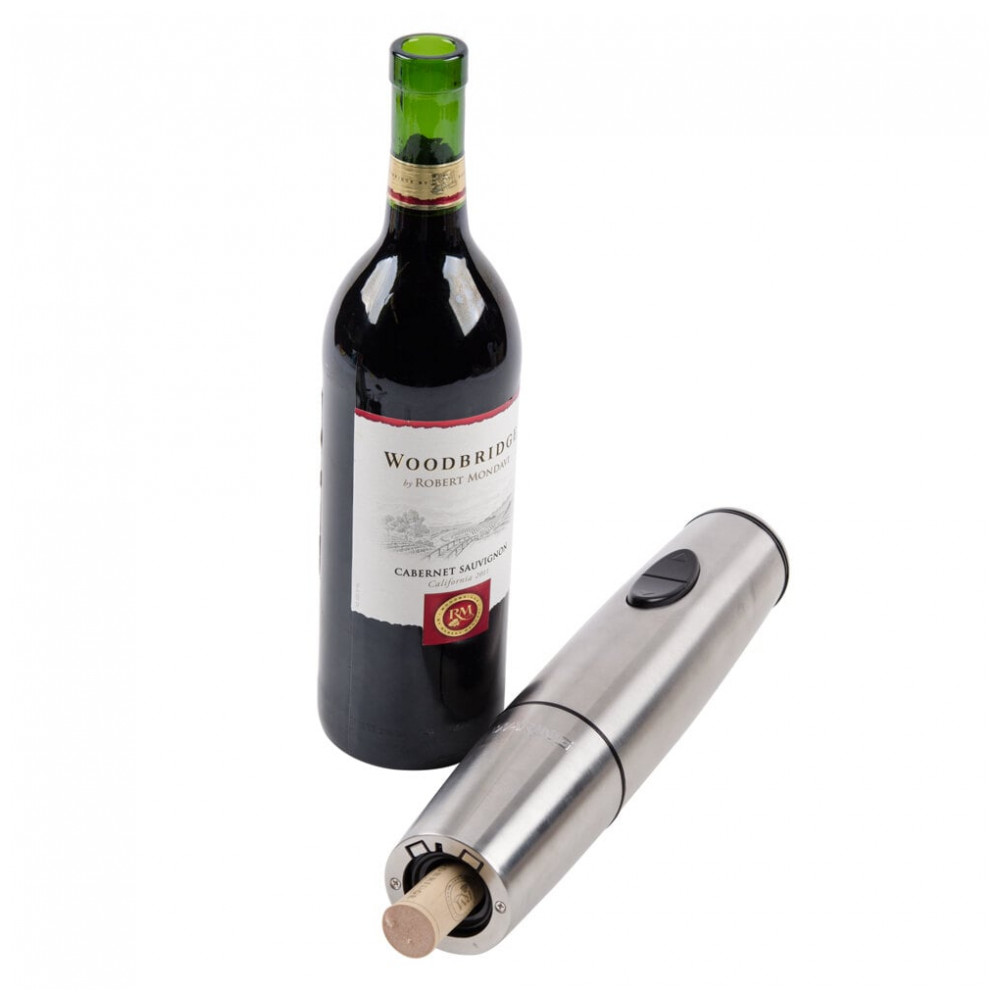 Corpo em plástico ABS reforçado com aço inoxidável no espiral (diâmetro 2,5 mm). A lâmina de foil corta selos plásticos em círculo preciso de 3 cm. Compatível com garrafas padrão de 75 cl (750 ml) com rosca de 17,5 mm.