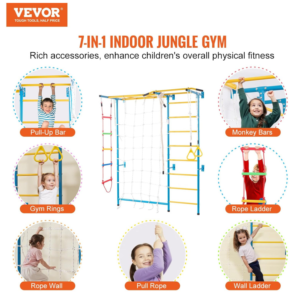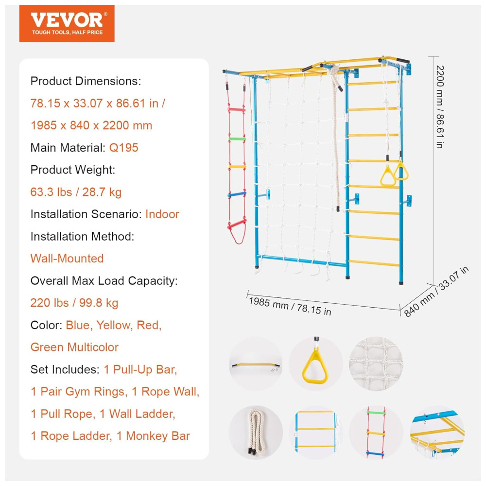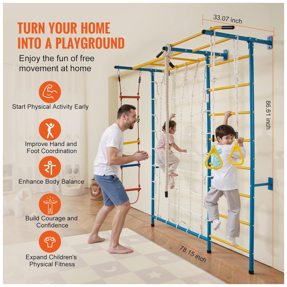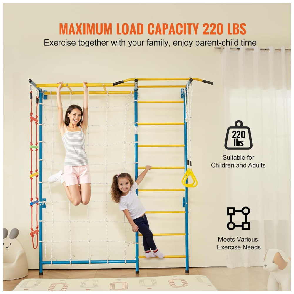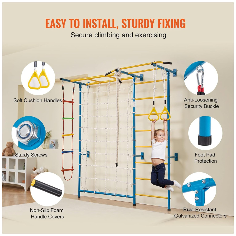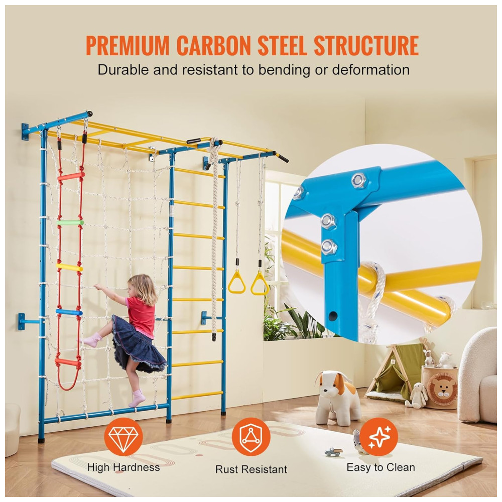 Academia de Escalada Multifuncional VEVOR para Crianças Conjunto de Brincadeira com Escada Sueca de Aço Carbono Escada de Parede Barra de PullUp