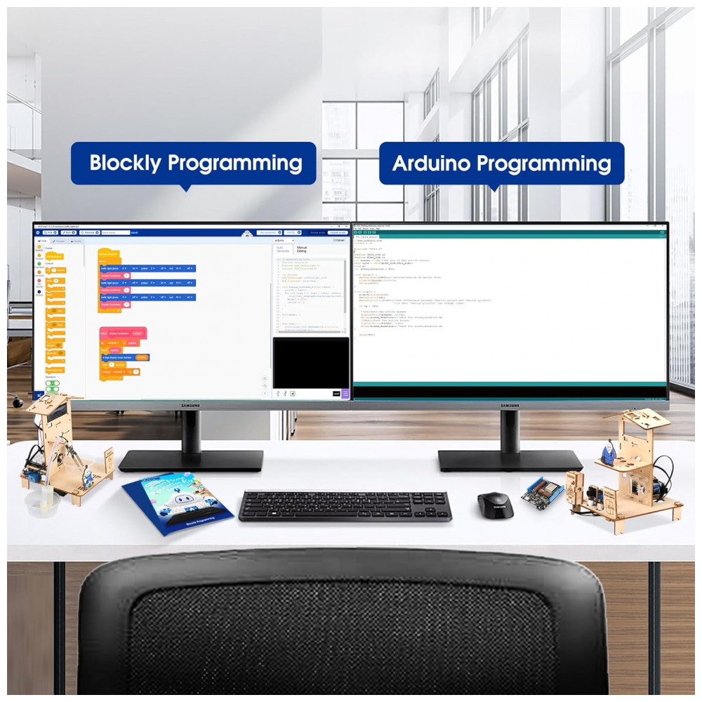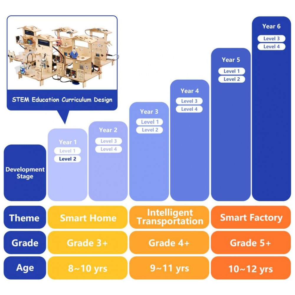 O kit atua nas áreas de ciência, tecnologia, engenharia e artes (STEAM), ao combinar eletrônica embarcada com ESP32, programação compatível com Arduino, design de estruturas físicas e aplicação em cenários de casa inteligente. Projetos como controle de acesso, alarme, irrigação automática e equipamentos automatizados permitem explorar sensoriamento, tomada de decisão, controle de atuadores e integração entre hardware e software em sistemas de engenharia aplicada.
