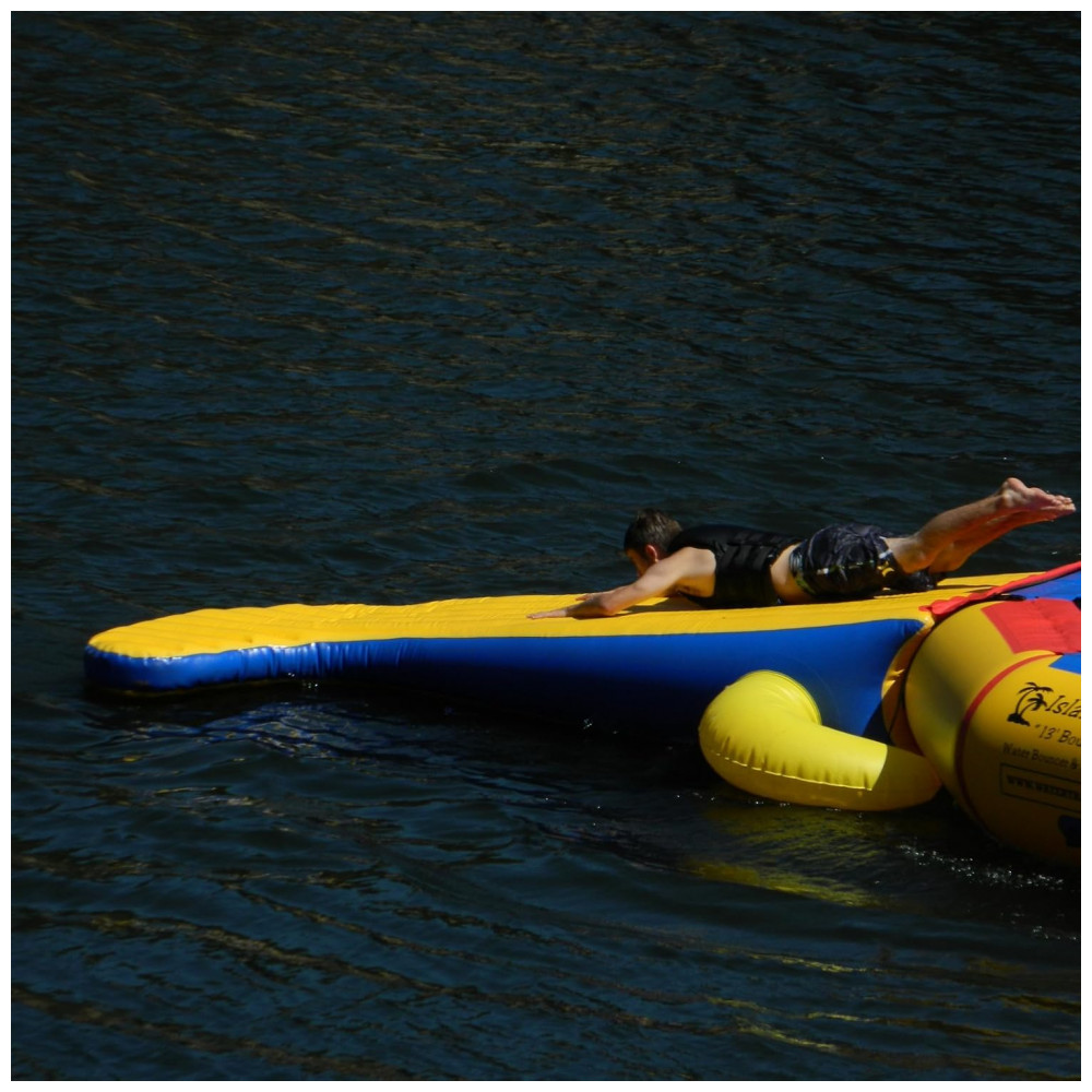 O acessório Gator Tail se prende universalmente a qualquer bouncer, trampolim de água de até de altura.