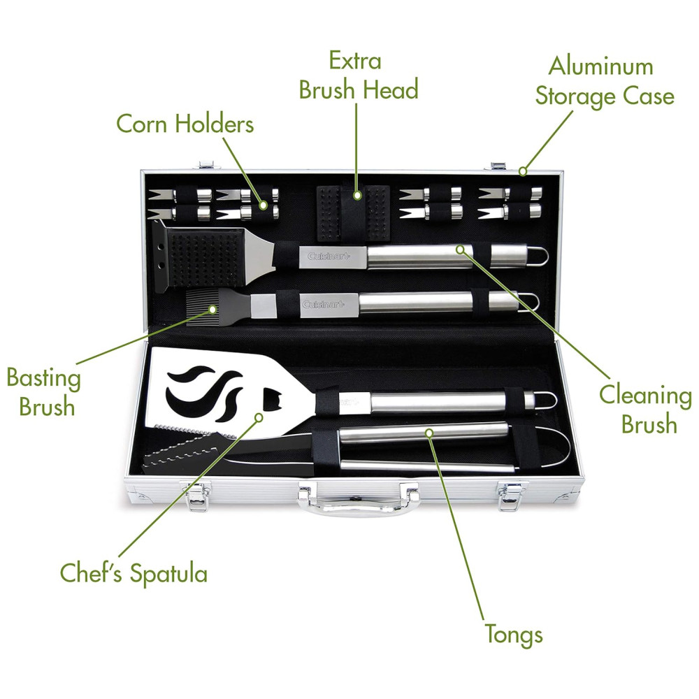 Acessório Luxo Espátula Grill Churrasco Conjunto 14 Peças Aço Inox CUISINART CGS 5014 Prateado