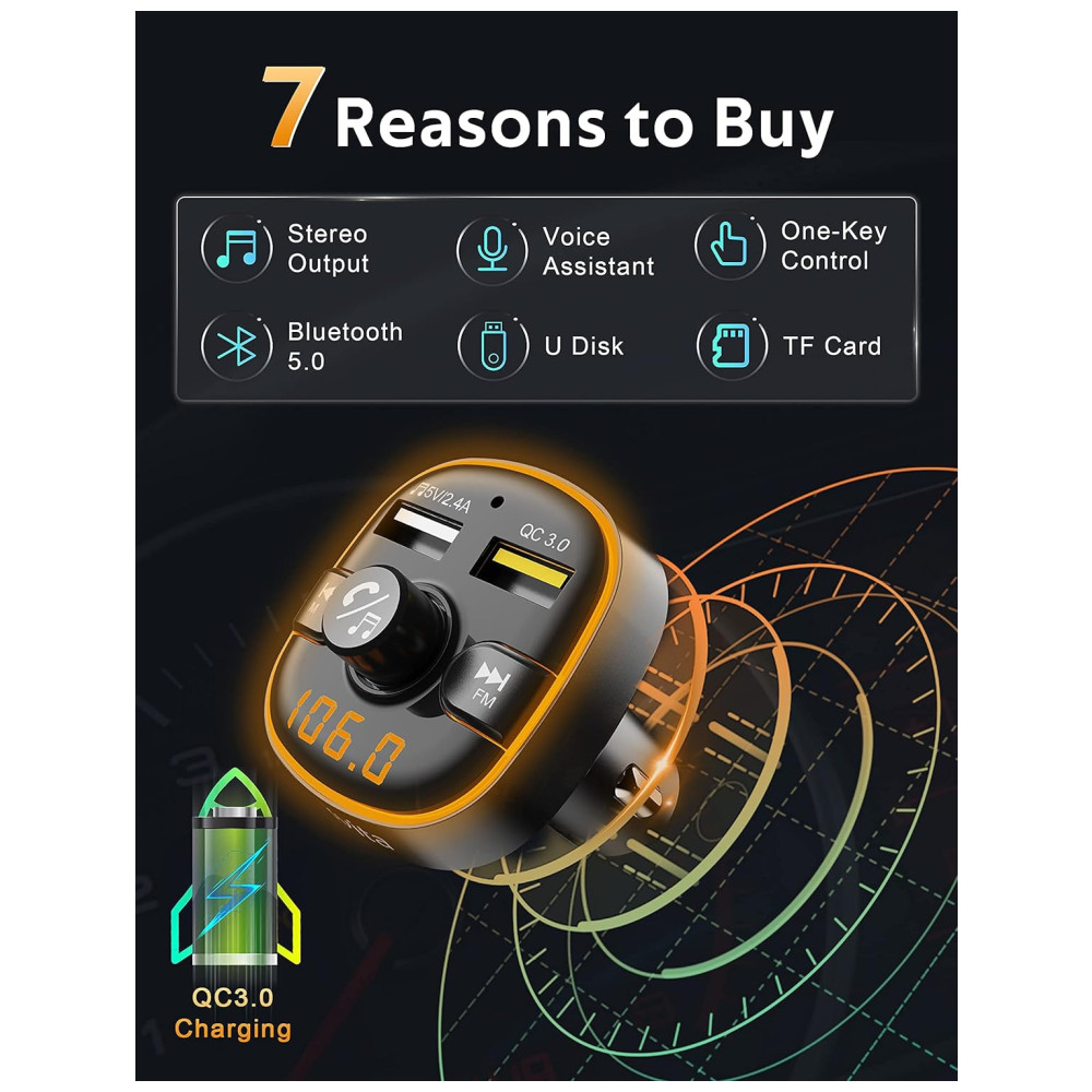 Assistente prático Portas USB duplas com uma porta 3.0 de carga rápida que é até 4X mais rápida do que os carregadores padrão, economiza tempo e reduz a dissipação de energia. E a outra porta de carga inteligente 2.4A pode ser usada para carregar ou conectar o disco U. Microfone embutido, compatível com comandos de voz Siri , Google. Fácil de atender ou encerrar uma chamada com uma tecla. Não há necessidade de pegar e segurar seu telefone. Torne seu processo de direção mais .