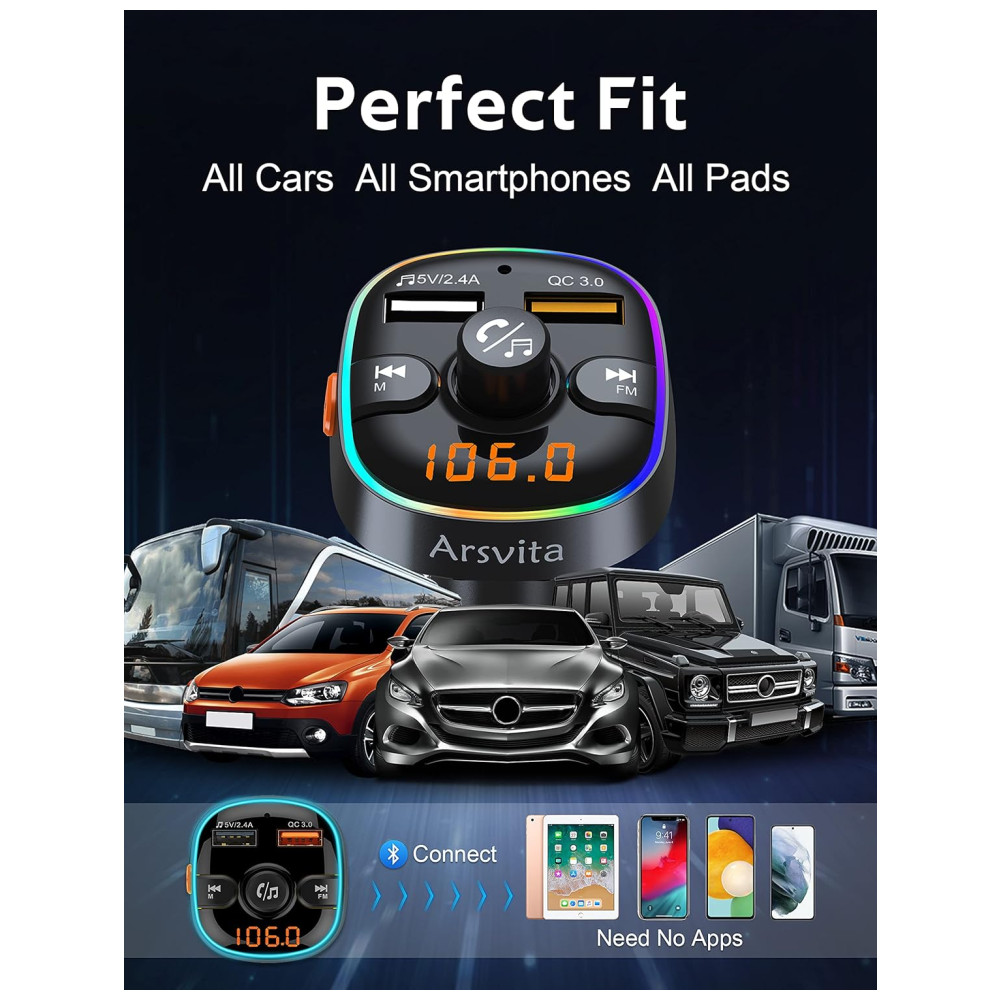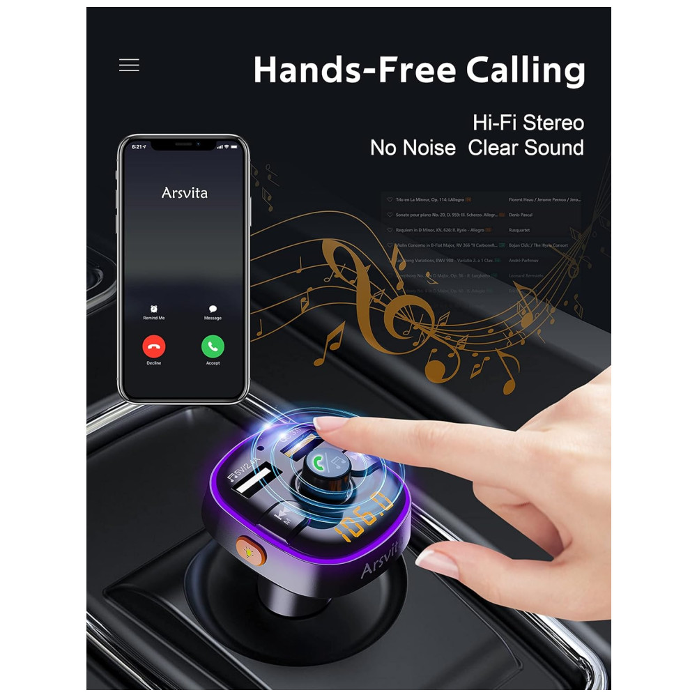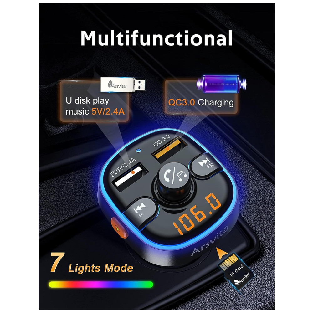 Adaptador Transmissor Veicular Bluetooth Arsvita Veicular USB LED Preto