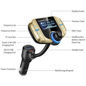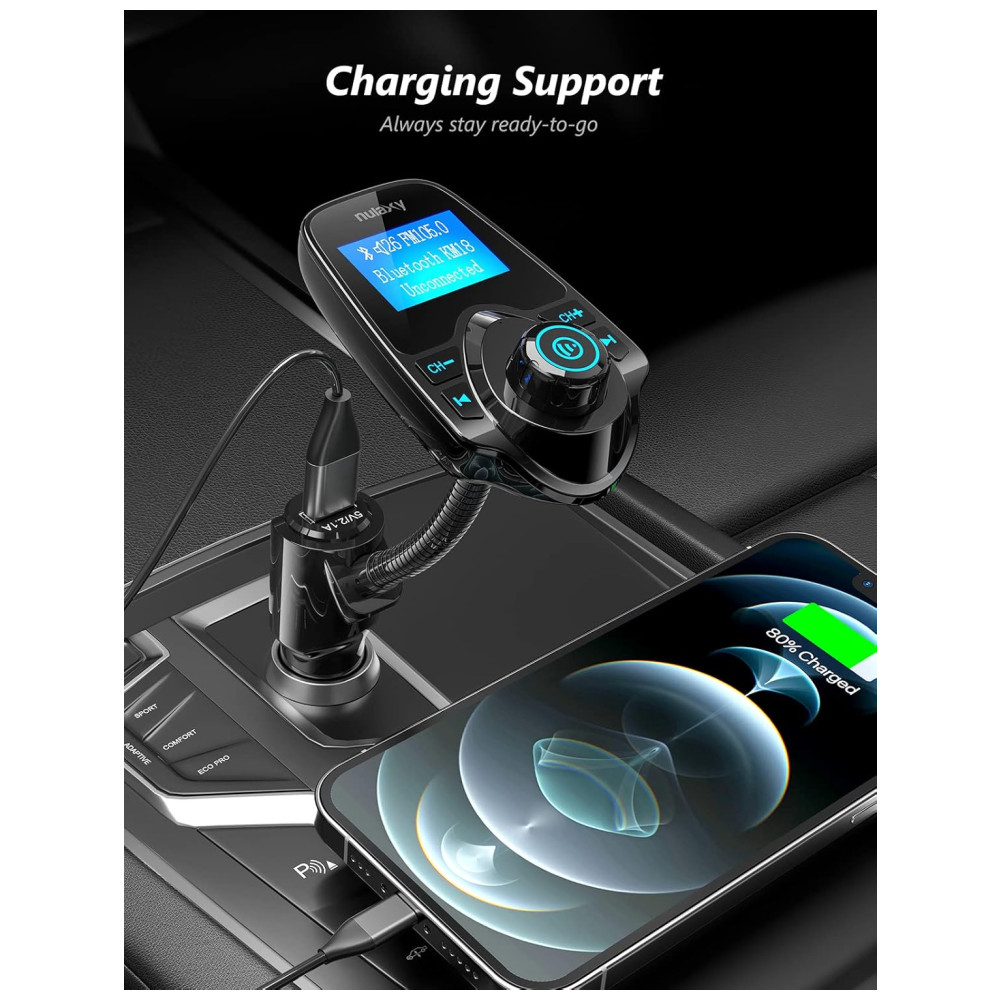 Pescoço de ganso flexível e Bluetooth V5.0 O pescoço de ganso giratório do adaptador de rádio sem fio pode fornecer um ângulo de visão ajustável e um conforto de visualização ideal da tela LCD. Com a tecnologia Bluetooth V5.0, o adaptador bluetooth do carro pode fornecer uma conexão mais estável e rápida sem desconexão intermitente.