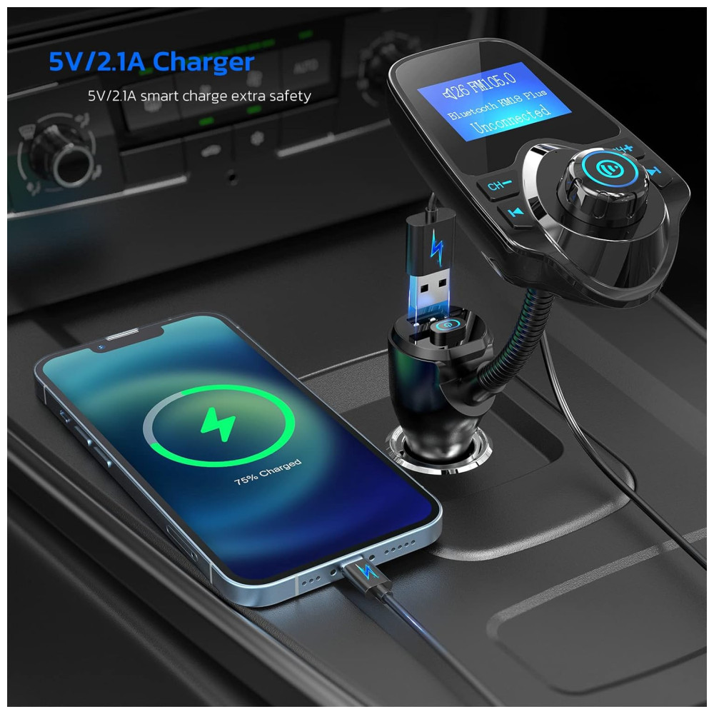 Adaptador Transmissor Veicular Bluetooth Veicular USB AUX NULAXY KM18 Plus Black 0018 Preto