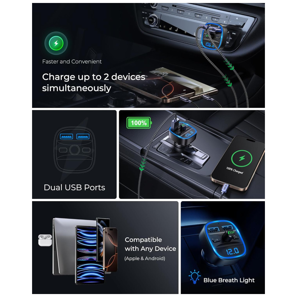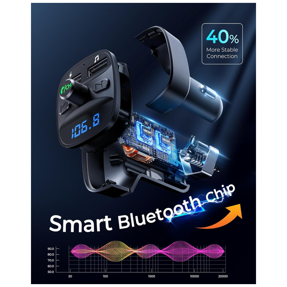 Maior alcance e compatibilidade Este transmissor Bluetooth é compatível com a maioria dos smartphones e mais dispositivos equipados com a função bluetooth. Ele se conectará automaticamente ao dispositivo Bluetooth emparelhado memorizado ao ser ligado. Além disso, com a faixa mais ampla de 87,5 MHz 108 MHz, você pode obter uma experiência musical mais estável e consequente sem interferência