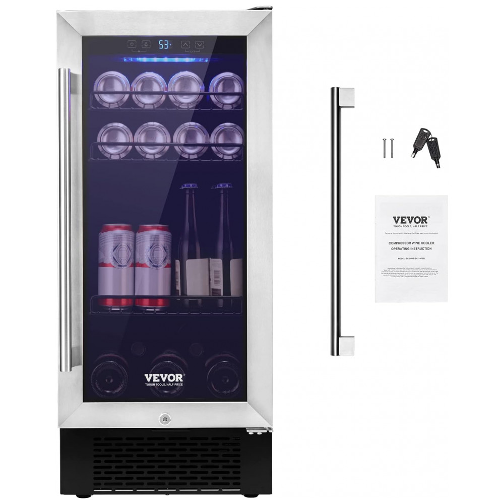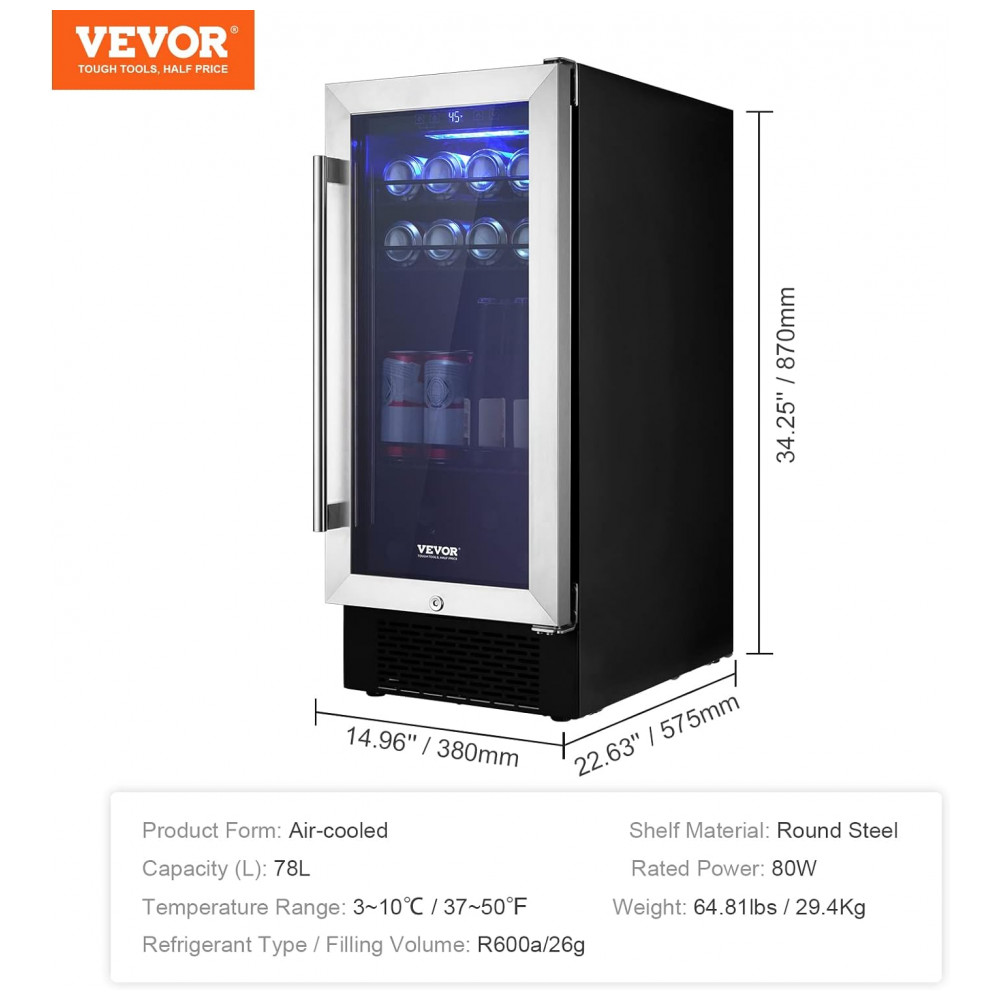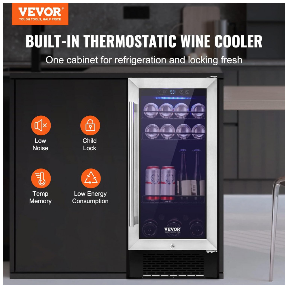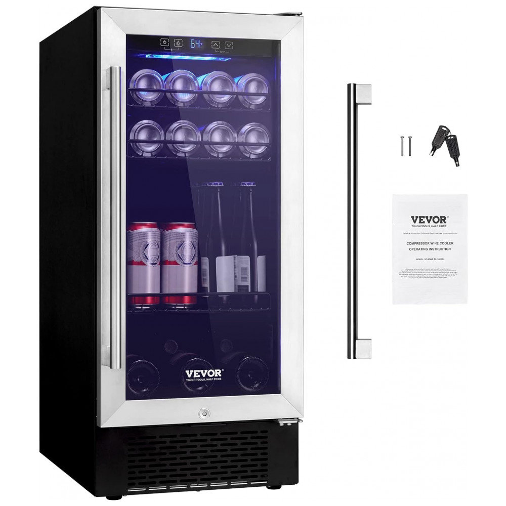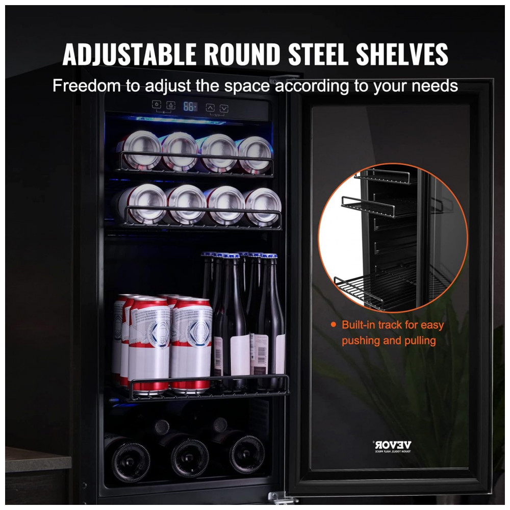 Adega Climatizada 85L com Prateleiras Ajustáveis para até 96 Latas 110V 80W VEVOR Prata