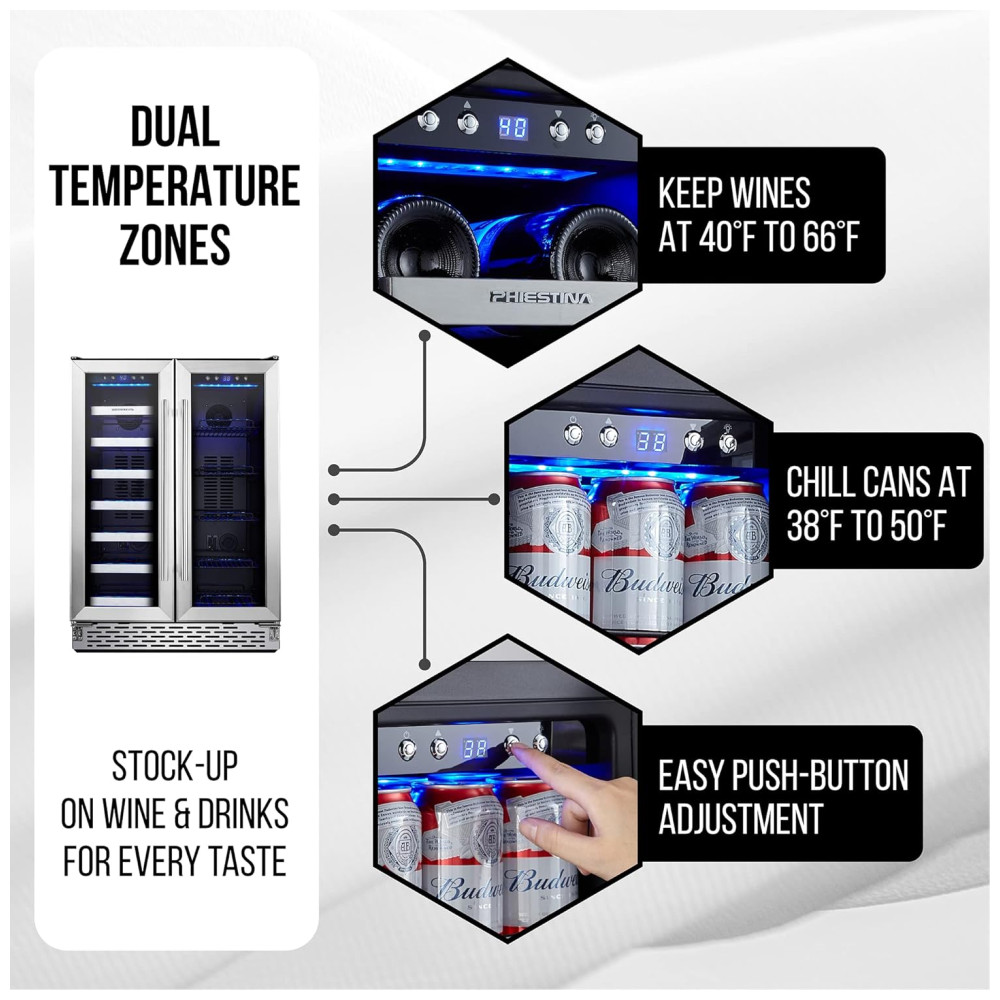 Adega Climatizada de Zona Dupla para 20 Garrafas e 72 Latas 110V Phiestina Prata