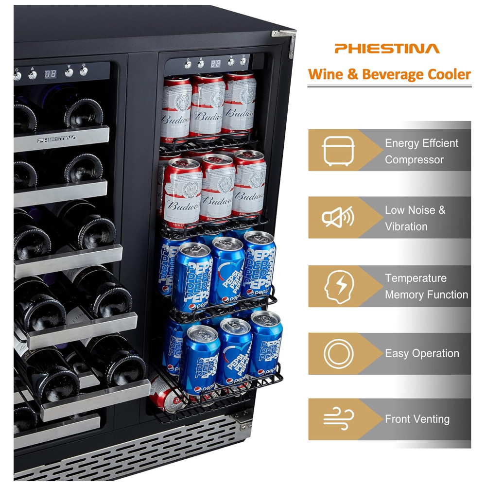SACIE A SUA SEDE com uma abundância de bebidas da geladeira Phiestina Wine Cooler. Este toque elegante no mini frigorífico contém um amplo suprimento de destilados enlatados e engarrafados para a sua festa ou família grande.