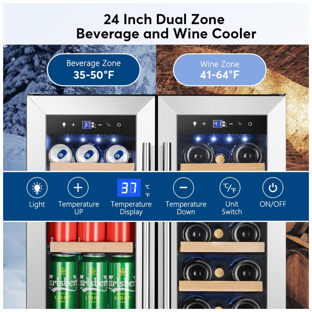 Geladeira para vinhos e bebidas com zona dupla Nossa geladeira para vinhos possui zonas de refrigeração duplas independentes. Você pode controlar as zonas de resfriamento duplas de forma independente. A zona esquerda oferece uma faixa de temperatura de 35 50F 1 10C, enquanto a zona direita oferece uma faixa de temperatura de 41 64F 5 18C. Você pode ajustar facilmente a temperatura em C ou F e definir com precisão o nível de temperatura ao seu gosto. Resfrie seus vinhos e bebidas na temperatura mais adequada e desfrute de seus melhores sabores.