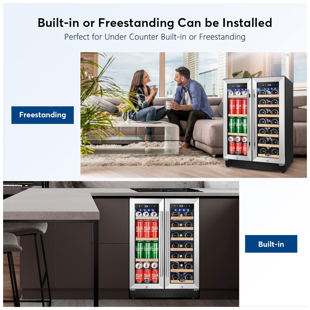 Tela de controle de toque inteligente O refrigerador de vinho e bebidas de 60 centímetros possui uma tela de toque inteligente fácil de usar. Você pode ajustar facilmente a temperatura e a luz tocando na tela digital. Ele também possui uma memória de temperatura inteligente, o que significa que sua geladeira de cerveja restaurará a temperatura definida após uma falha repentina de energia, evitando que seu vinho estrague.