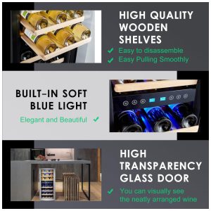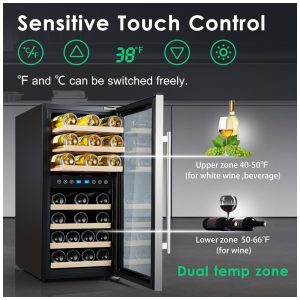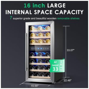 ZONAS DE TEMPERATURA DE ZENAMENTO OTIMIZADAS Mantenha até 33 garrafas de vinhos tintos e brancos neste refrigerador de vinho, para que você possa desfrutar de um sabor melhor, mesmo que seja um vinho simples. Você merece o melhor.
