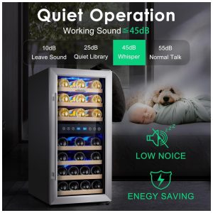 SILENCIOSO Como nosso refrigerador utiliza um sistema de refrigeração por compressor, ele é muito mais silencioso do que outros refrigeradores de vinho Não irá perturbar o ambiente da sua cozinha ou da sua área de bar em casa.