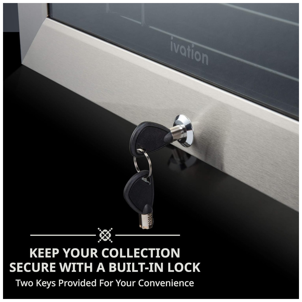 ESTABILIDADE DE TEMPERATURA A tecnologia de compressor dos refrigeradores de vinho Ivation garante que a temperatura não seja afetada por fontes externas de calor e atinge temperaturas baixas o suficiente para abrigar vinhos brancos espumantes, com uma faixa de temperatura de 5C a 18C