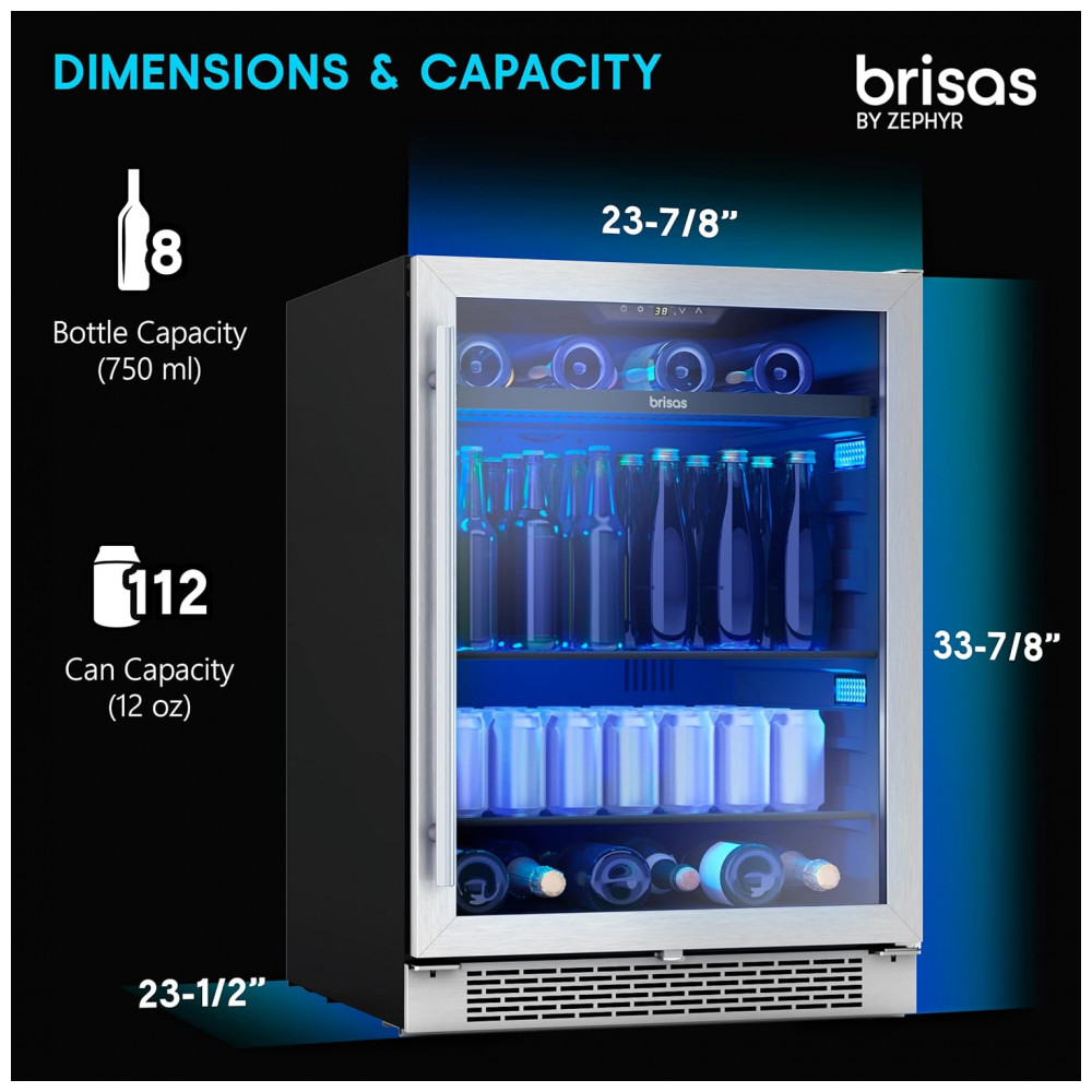 Adega Climatizada de Zona Única para 8 Garrafas e 112 Latas 110V Zephyr Prata
