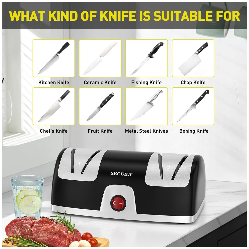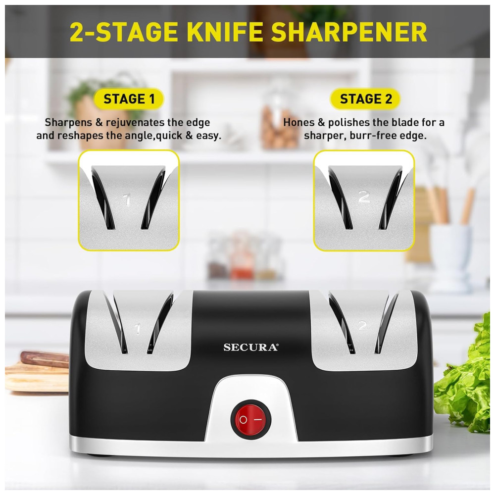 Afiador Elétrico de Facas com 2 Níveis 110v SECURA WT 28D 1 Preto