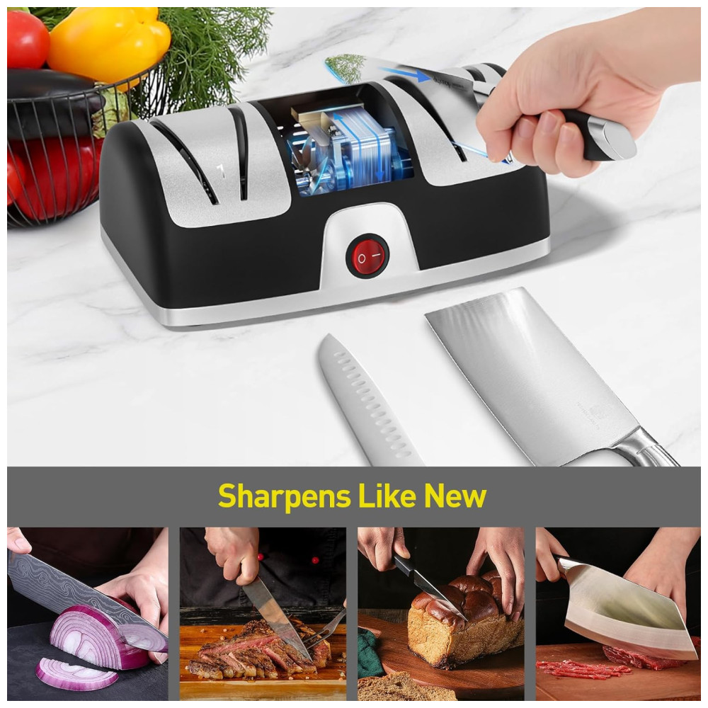 O sistema de afiação de dois estágios afia de forma rápida e fácil a maioria das lâminas não serrilhadas para resultados profissionais, você obterá uma lâmina afiada em segundos.