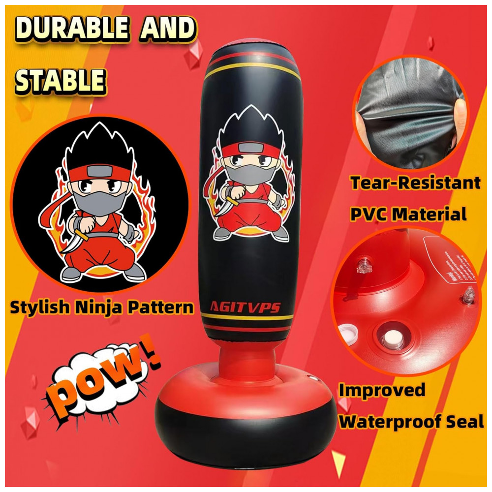 Descubra o conjunto inflável de saco de pancadas AGITVPS, especialmente projetado para crianças de 8 a 12 anos. Com impressionantes 168 cm de altura, este saco de pancadas é feito de PVC resistente e grosso, garantindo durabilidade e capacidade de retorno rápido e eficiente a cada soco ou chute. O design divertido de ninja torna a atividade física uma aventura emocionante, estimulando o exercício diário, a liberação do estresse e promovendo momentos felizes em família. A base larga de 74 cm pode ser preenchida com areia ou água, proporcionando estabilidade e resistência contra tombos, permitindo que as crianças brinquem livremente e com segurança. A montagem é rápida e simples, levando apenas dez minutos: basta inflar em três partes usando a super bomba de ar incluída, equipada com bicos à prova de vazamentos, e preencher a base para começar a diversão imediatamente. O conjunto completo inclui um saco de pancadas de 168 cm, um par de luvas de boxe infantis, a super bomba de ar, um manual de instruções e dois remendos para reparos em caso de perfurações acidentais. Ideal para fortalecer os laços entre crianças e adultos através do jogo interativo, este conjunto é o presente perfeito para estimular a atividade física e o bem-estar dos pequenos.