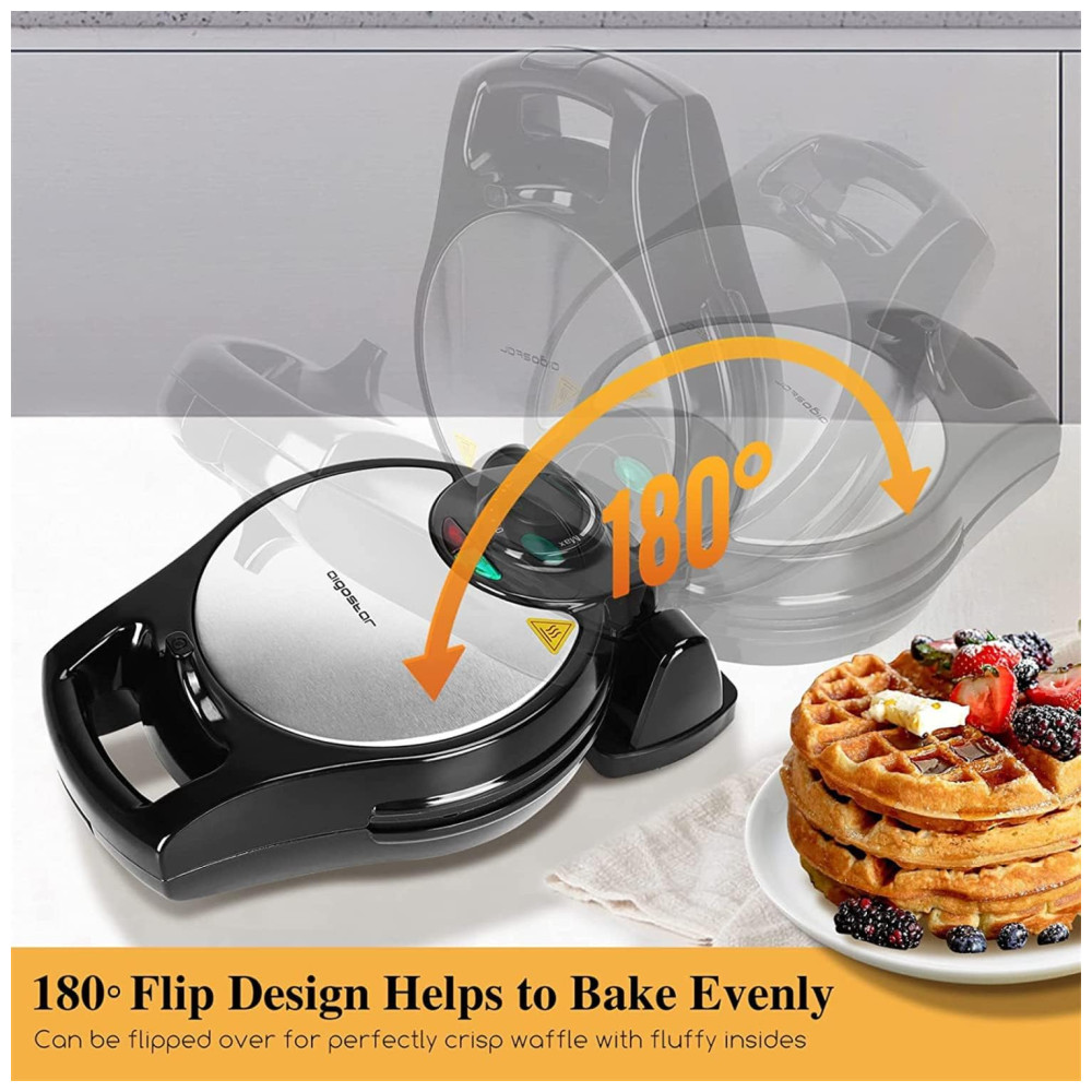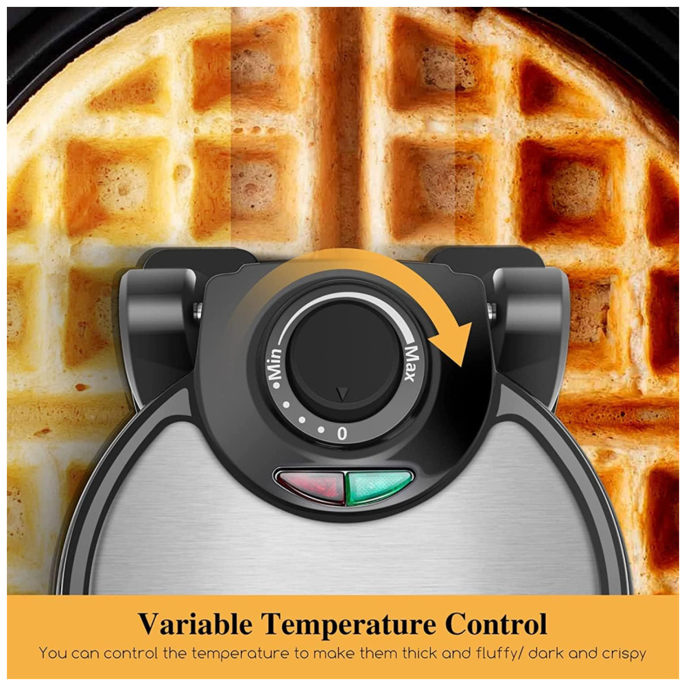 Controle de temperatura ajustável e design flip de 180 Permite personalizar o calor da máquina de fazer waffles durante o cozimento, controlar a fofura , crocante dos waffles para diferentes tipos de acabamentos e massas, crocantes por fora e macios por dentro.