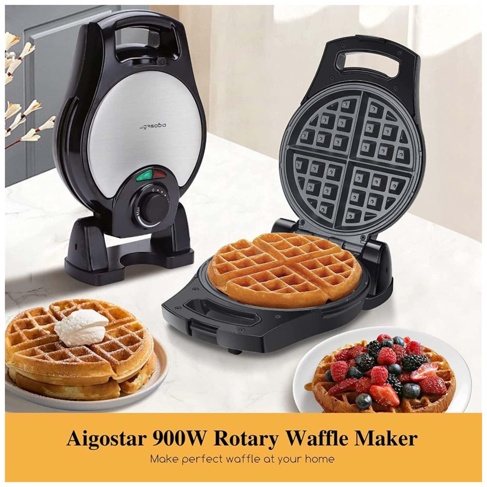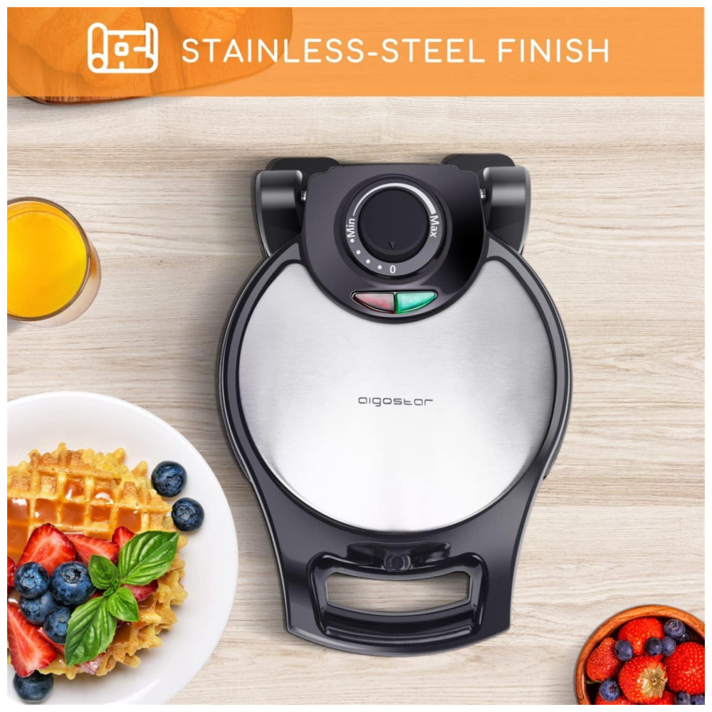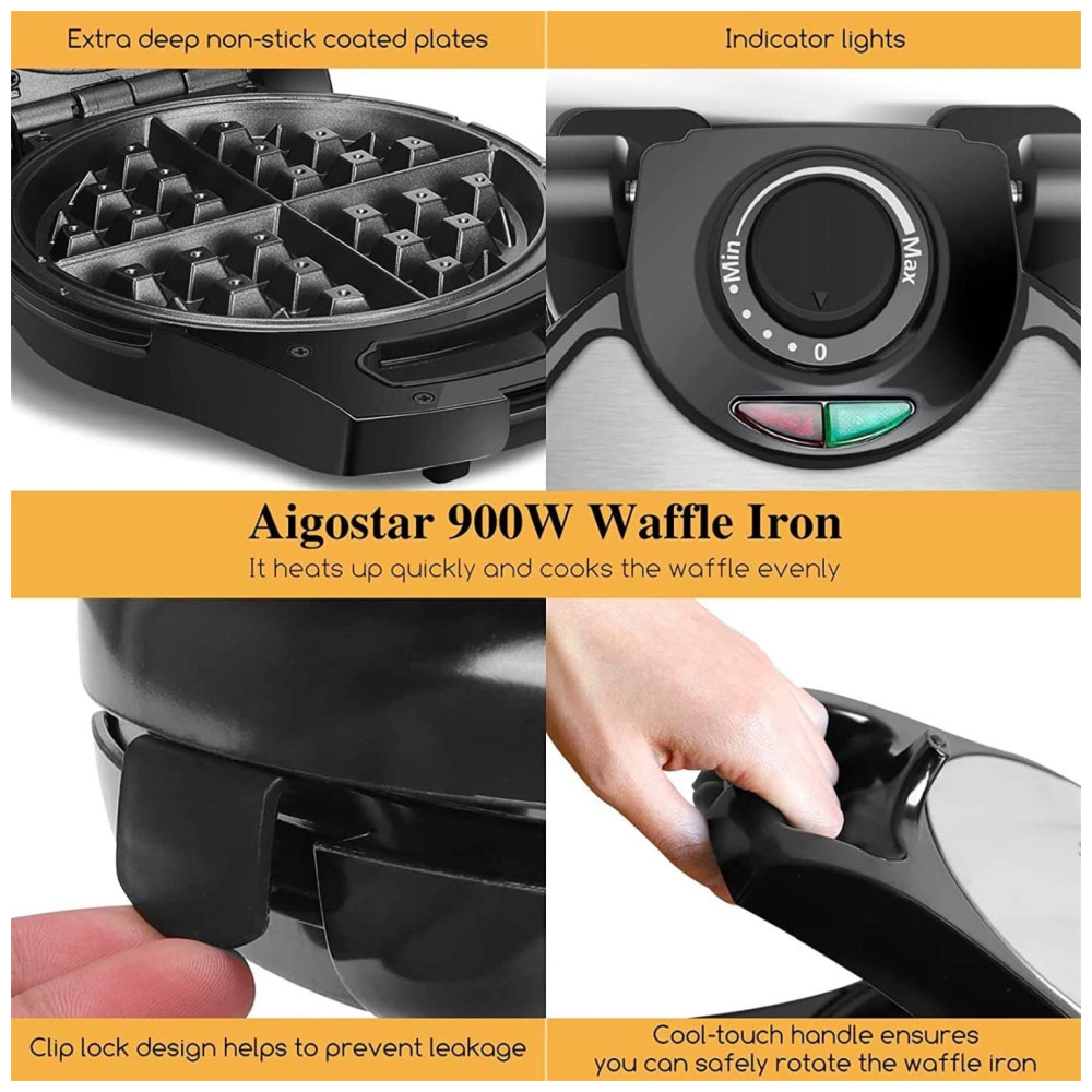 Aigostar Máquina de Waffle Antiaderente Aço Inoxidável 110V 900W Preta
