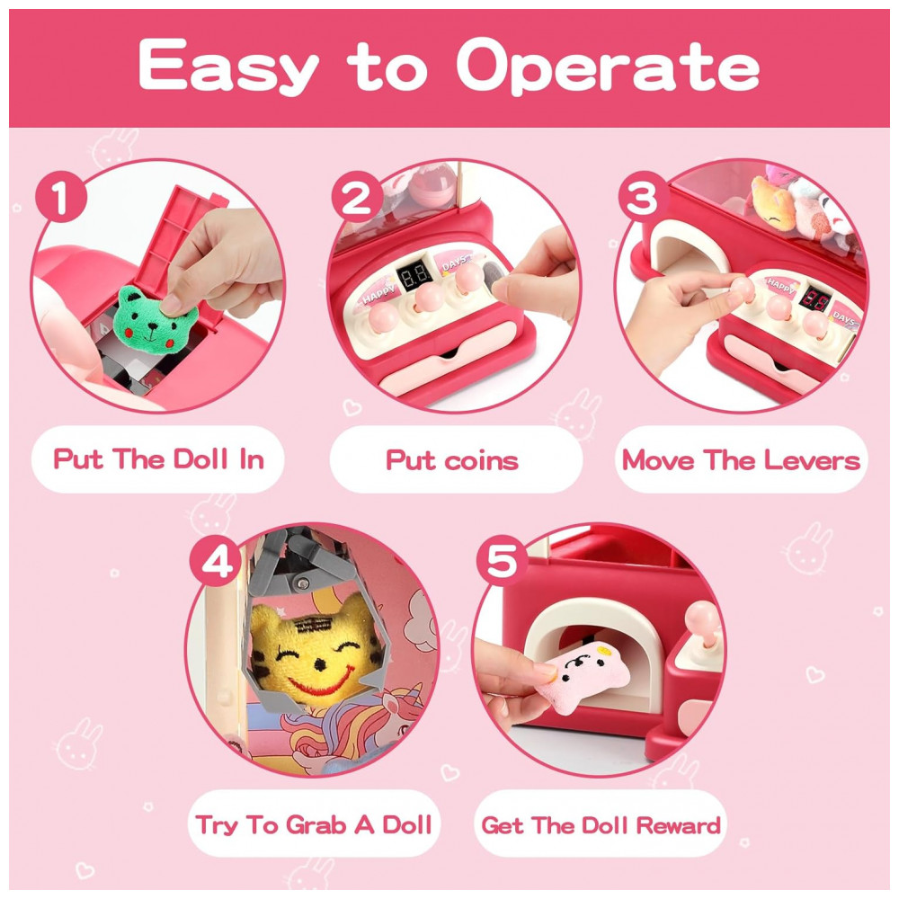 Conteúdo da embalagem: 1 máquina de garra, 1 cabo USB, 55 peças de prêmios (20 mini pelúcias, 10 ovos surpresa, 25 moedas de jogo)