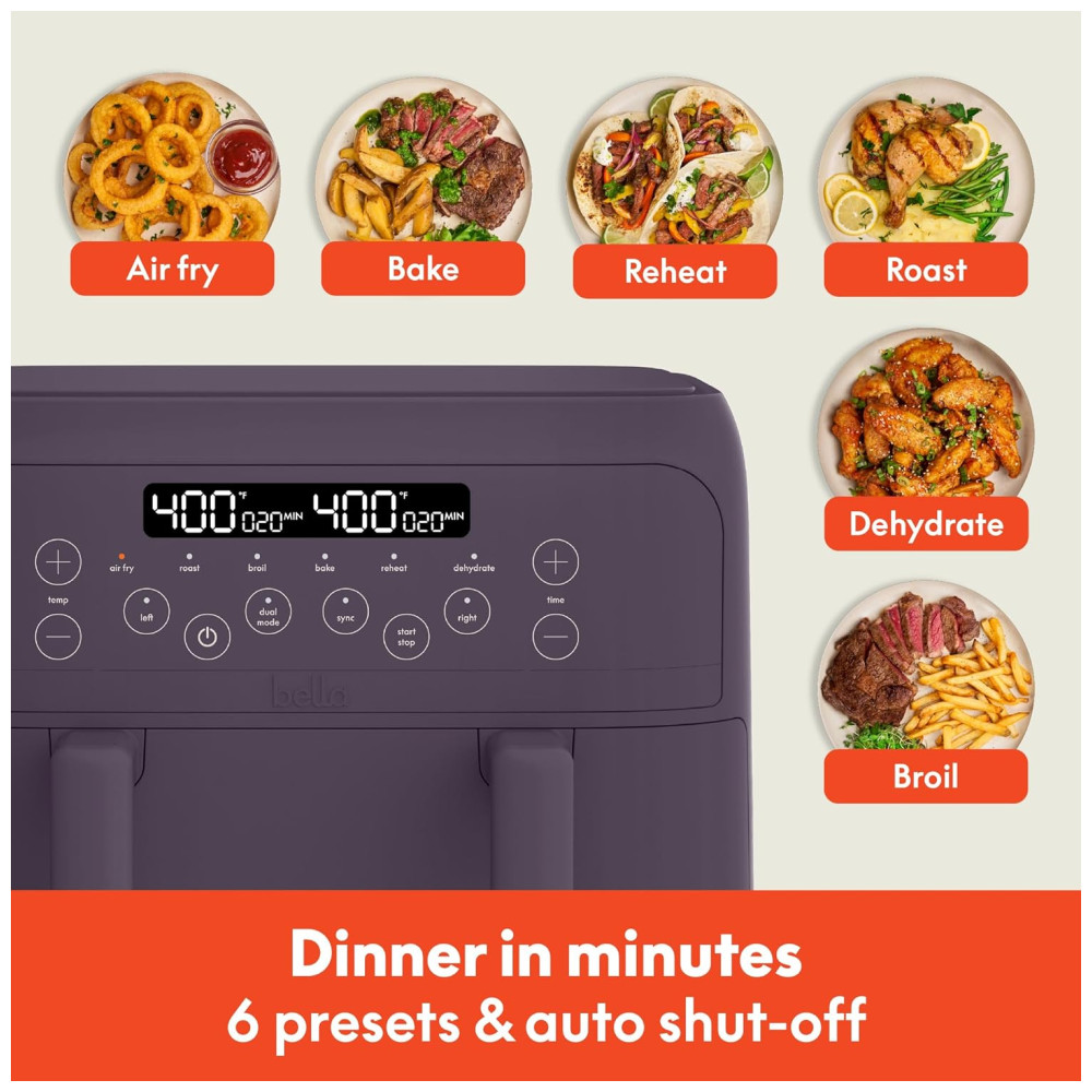 Air Fryer 37L com Revestimento Cerâmico Antiaderente e Cesta Dupla 110V 1200W Bella TriZone Ameixa