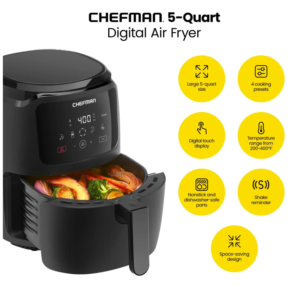 Air Fryer 5 Litros com 4 Predefinições e Controle de Temperatura 110V 1500W Chefman Preto
