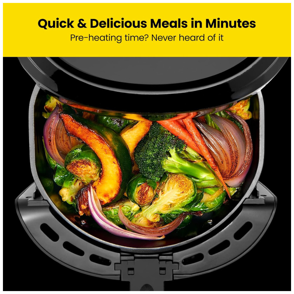 Com desligamento automático, o aquecimento pausa quando a cesta é aberta e reinicia de onde parou ao ser recolocada. Assim que o tempo de cozimento termina, o aparelho desliga automaticamente. Esta fritadeira de 5 litros é perfeita para alimentar toda a família, cerca de 3 a 4 pessoas, e foi projetada para colocar o jantar na mesa em minutos.