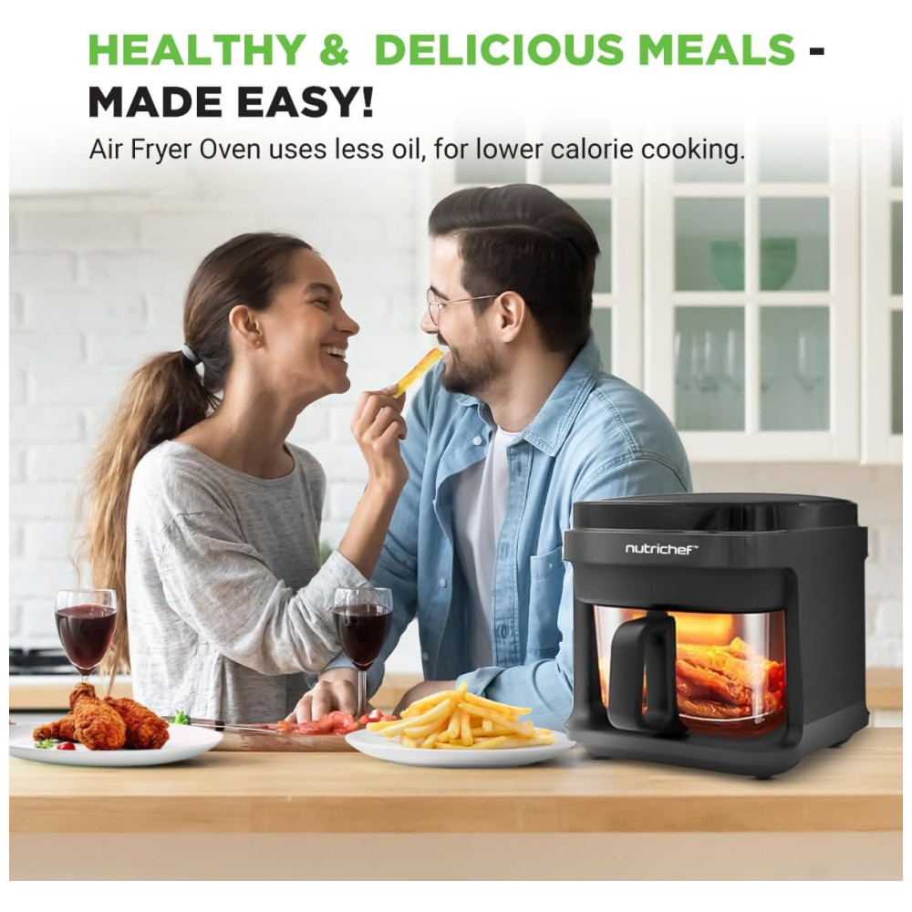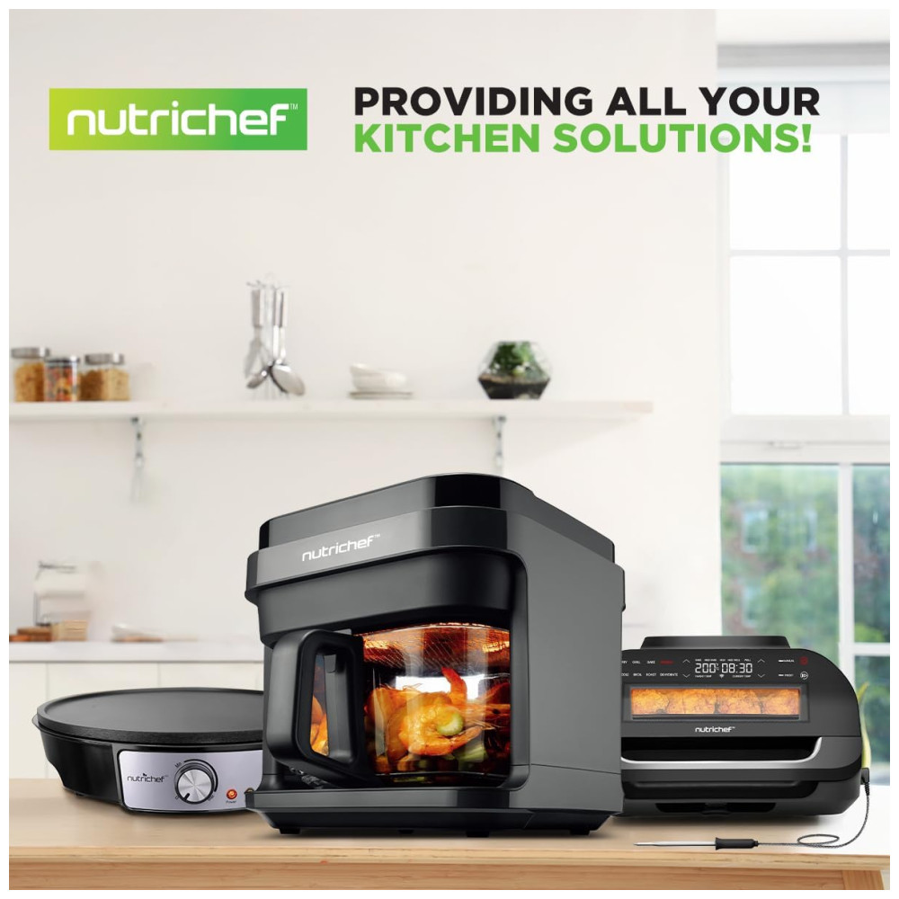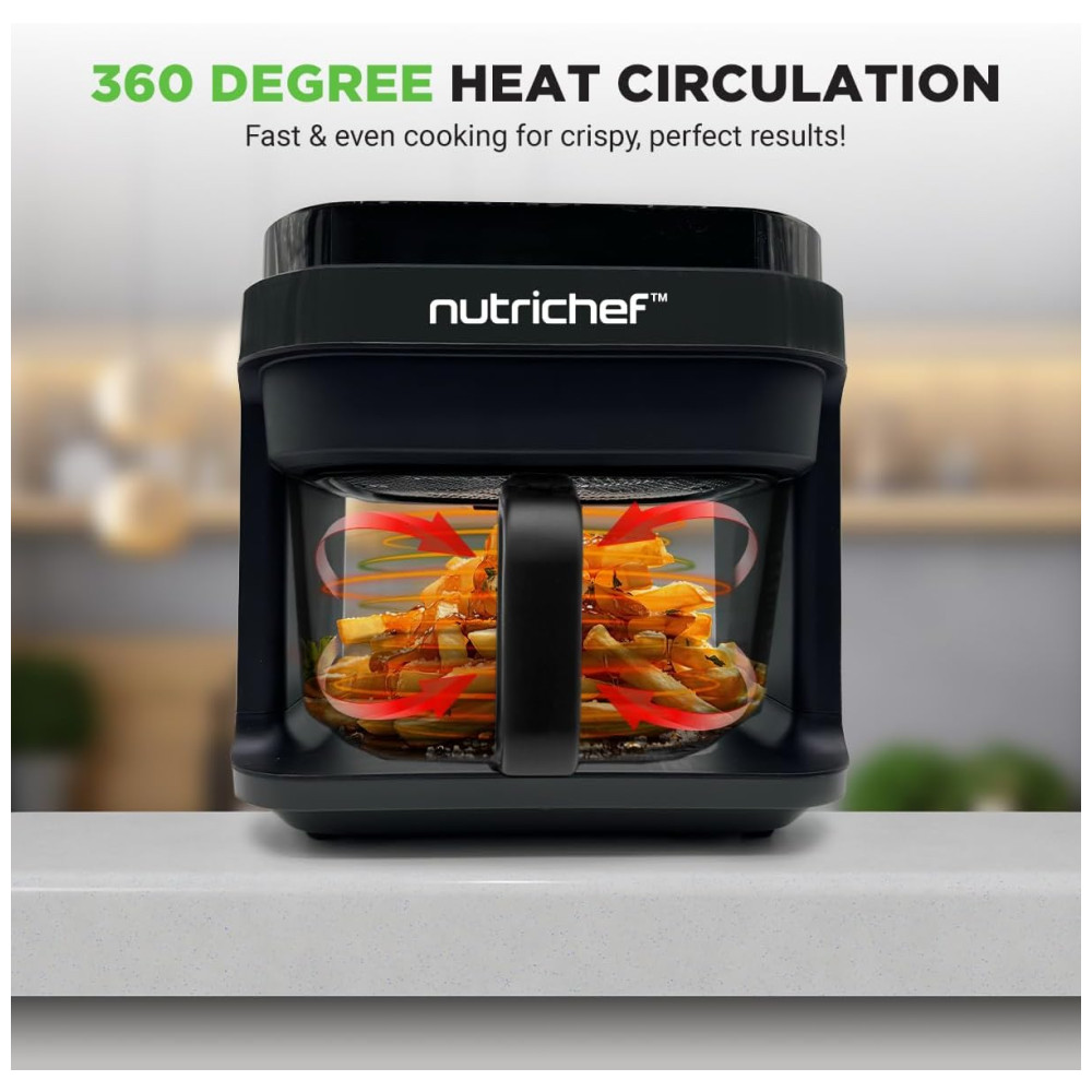 Air Fryer 54L com 8 Funções Predefinidas Tigela Transparente Controle Preciso de Temperatura e Tempo 110V 1200W NutriChef NCAF539TB Cinza