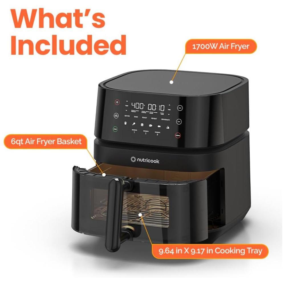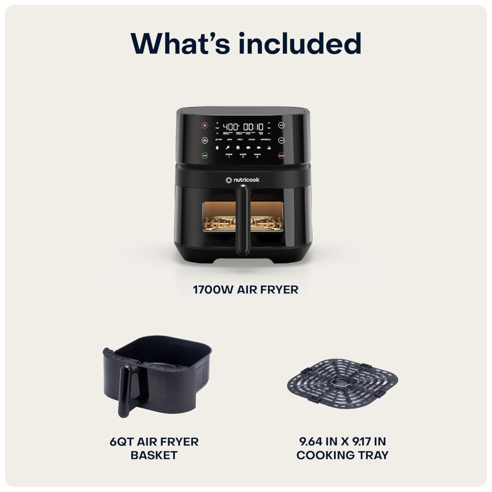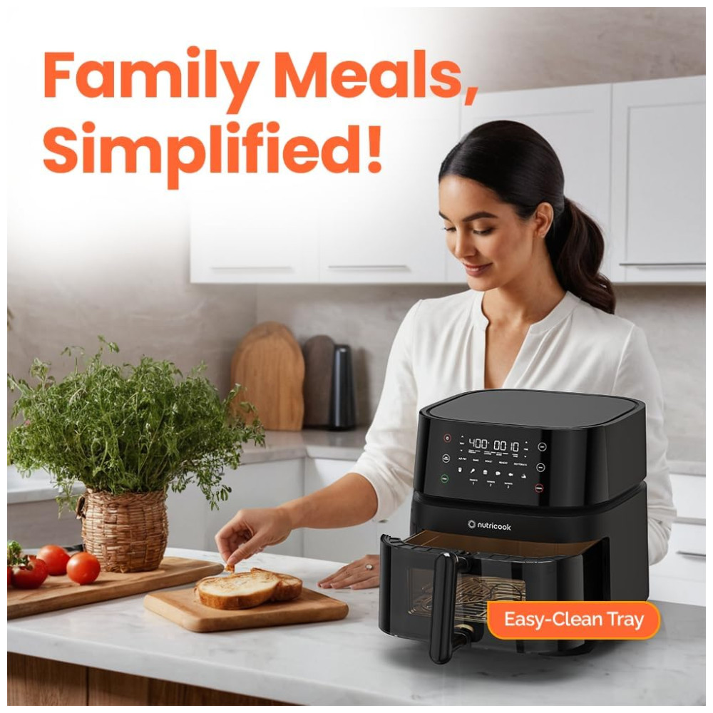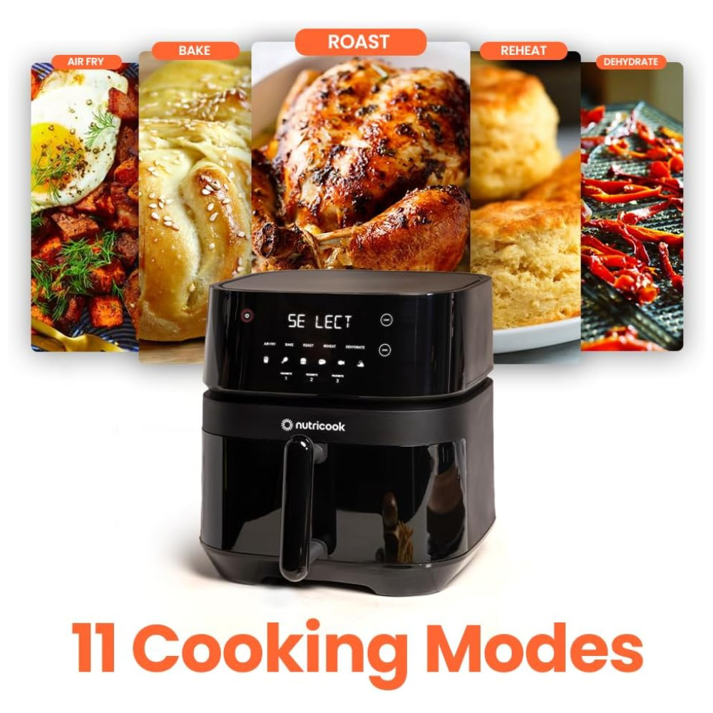 Air Fryer 5.6L com 12 Funções Predefinidas Cesto Antiaderente Silencioso e Fácil de Limpar 110V 1500W Nutricook Preta