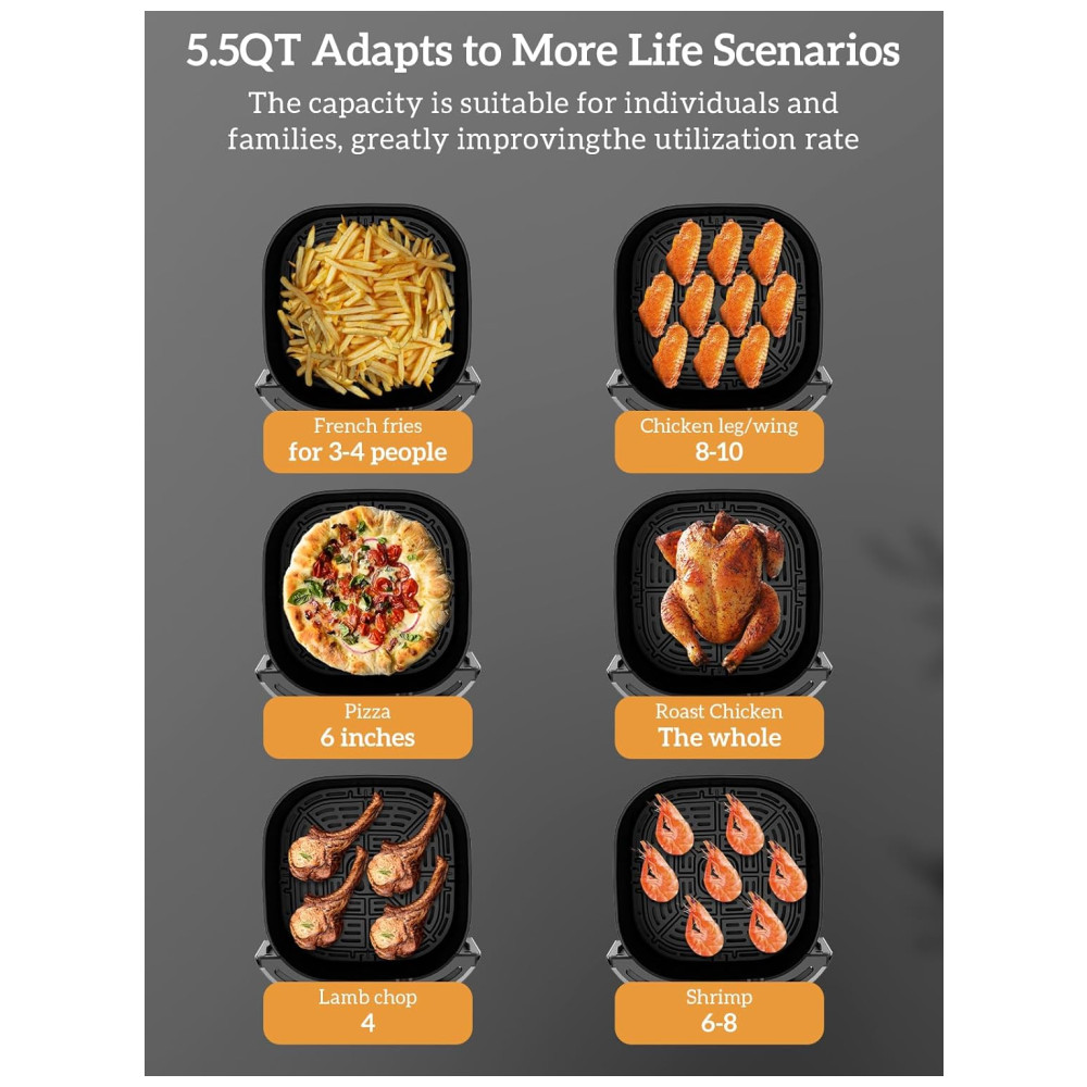 Com uma capacidade de 4,9 litros, é ideal para porções individuais de alimentos como batatas fritas, lanches e asas de frango. Ela usa até 97% menos óleo do que a fritura tradicional, permitindo que você aproveite texturas crocantes sem a preocupação com a gordura.