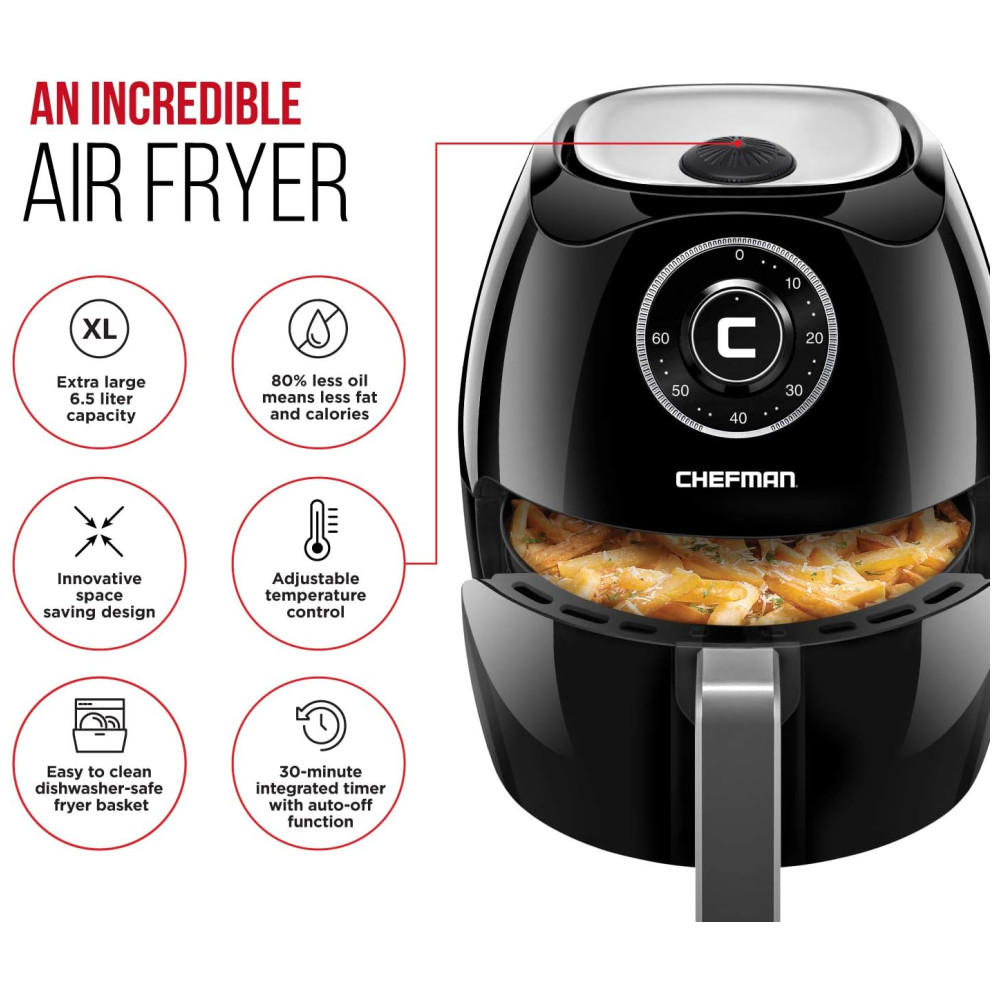 Air Fryer 6.1 Litros com Temporizador de 60 Min e Desligamento Automático 110V 1700W Chefman Preta