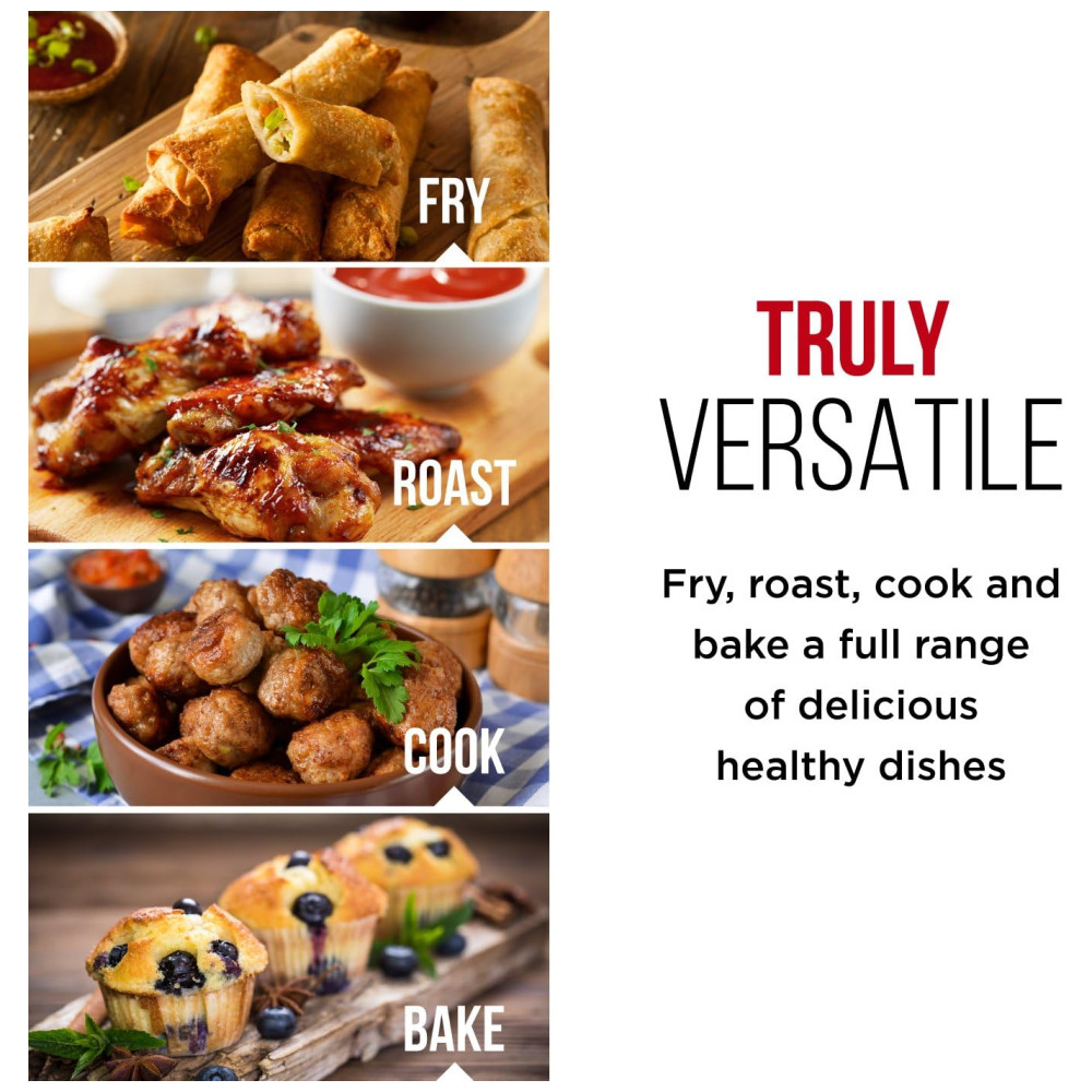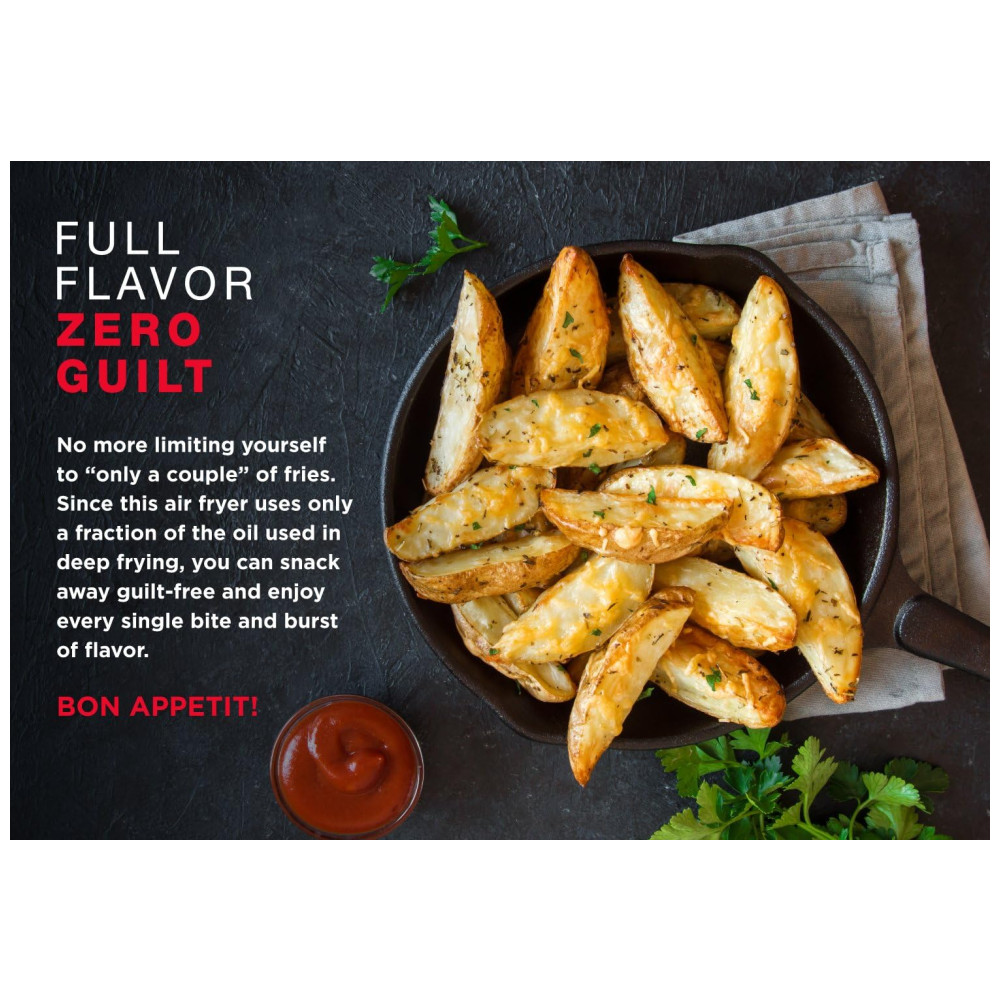 FRITURA MAIS SAUDÁVEL: Com esta air fryer, alimentos fritos saudáveis se tornam realidade. A faixa de temperatura de 79 a 204°C permite que você cozinhe na temperatura desejada, alcançando um acabamento crocante e saudável usando pelo menos 98% menos óleo do que as fritadeiras tradicionais. Frite legumes, pizzas, alimentos congelados e sobras – esta air fryer doura cada centímetro da sua comida de forma uniforme.
