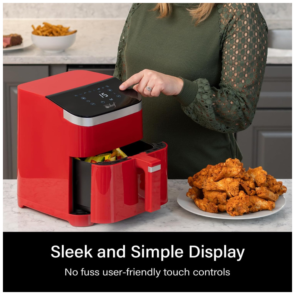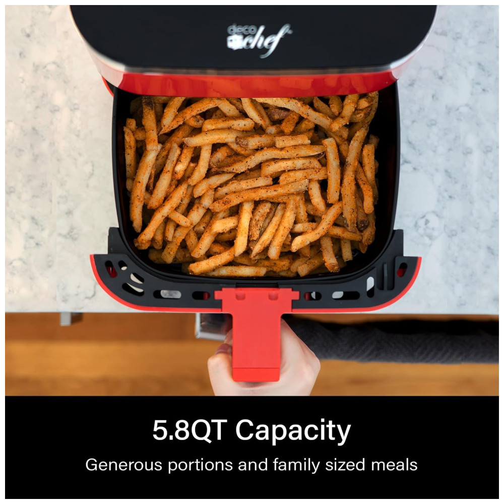 Air Fryer 8 em 1 5.4L com Programas de Cozimento Inteligente Cesta Antiaderente e Lavável na Máquina de Lavar Louça 110V 1500W Deco Chef Vermelha