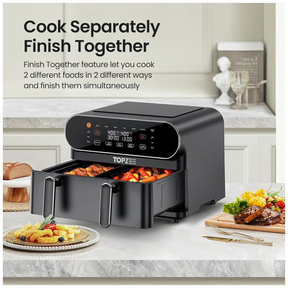 Air Fryer 8 em 1 de 1026 Litros com Cesto Flexível e Divisória para Cozimento Duplo 110V 1700W topzee Preta