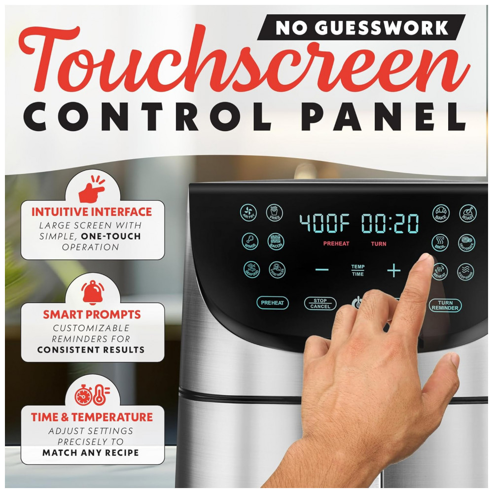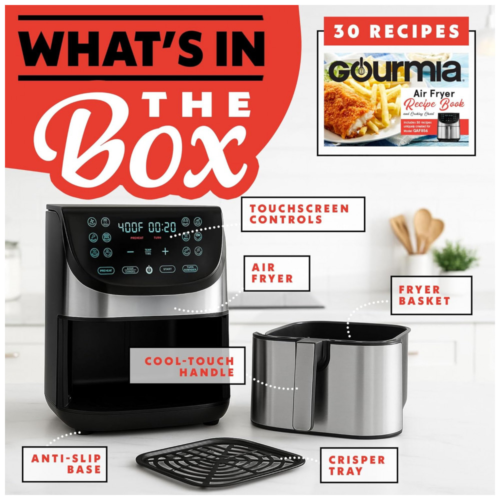 Air Fryer 8 Litros com Painel de Controle Digital Aço Inoxidável 1700W 110V Gourmia Prata