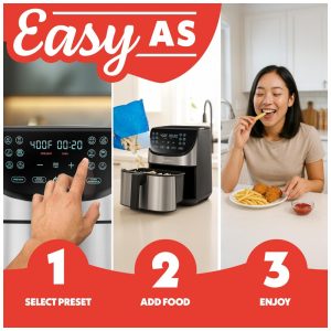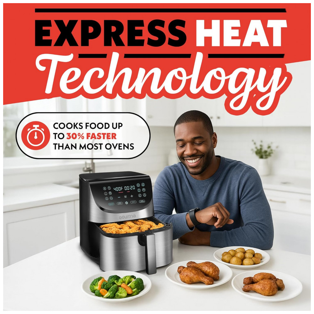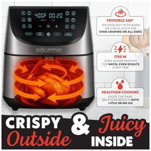 Adquira já o Forno Air Fryer Gourmia de 7,6 Litros e transforme sua cozinha com um aparelho multifuncional que combina praticidade, saúde e sabor em cada refeição!
