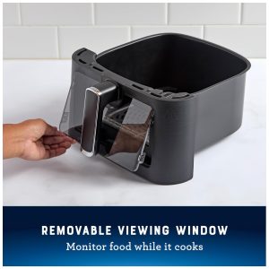 A janela de visualização removível permite monitorar o processo de cozimento e pode ser facilmente limpa. A luz interna da câmara de cozimento oferece visibilidade aprimorada durante o monitoramento do progresso do cozimento. Além disso, o revestimento durável e antiaderente significa que os alimentos não grudam e é resistente a arranhões e fácil de limpar.