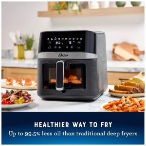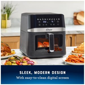 O temporizador de 60 minutos tem um alerta sonoro de prontidão para avisar quando a comida estiver pronta. O exterior moderno em preto fosco tem detalhes cromados e uma tela digital fácil de limpar. Para refeições fáceis de preparar, esta Air Fryer Oster é o único eletrodoméstico de cozinha que você usará todos os dias. Experimente agora e desfrute de refeições mais saudáveis e deliciosas.