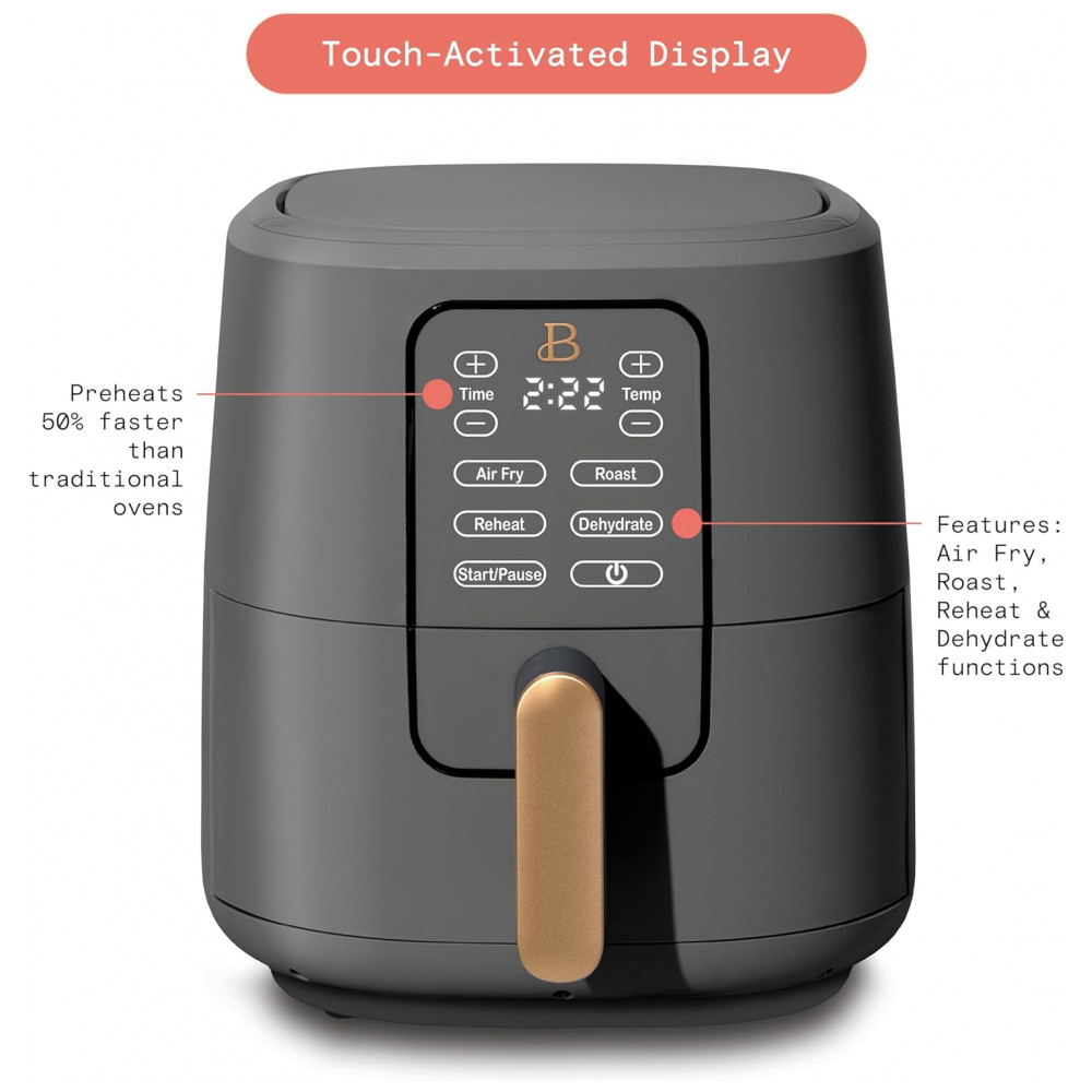 Descubra a eficiência e praticidade da Air Fryer Digital Generic de 6 quartos, equipada com a inovadora tecnologia TurboCrisp, que garante cozimento rápido e uniforme utilizando uma quantidade mínima de óleo, reduzindo a gordura em até 75%. Com quatro funções pré-programadas — fritar com ar quente, assar, grelhar e reaquecer —, esta air fryer oferece versatilidade para preparar uma variedade de refeições deliciosas com facilidade. Ajuste a temperatura de forma precisa entre 32°C e 204°C para atender a diferentes receitas, garantindo resultados perfeitos a cada uso. O aparelho possui uma bandeja e cesta antiaderentes, livres de PFOA e PFOS, que facilitam a limpeza e podem ser levadas à lava-louças, proporcionando ainda mais praticidade no seu dia a dia. Seu design elegante em cinza oyster com detalhes dourados, criado pela Drew Barrymore, combina com qualquer estilo de cozinha, enquanto o visor digital sensível ao toque permite um controle simples e moderno das funções. Com 1750 watts de potência, ela acelera o preparo dos alimentos, mantendo-os saborosos e crocantes. Para sua segurança, a air fryer conta com desligamento automático após 60 minutos de uso. Uma solução completa para quem busca cozinhar de forma saudável, rápida e com resultados incríveis.