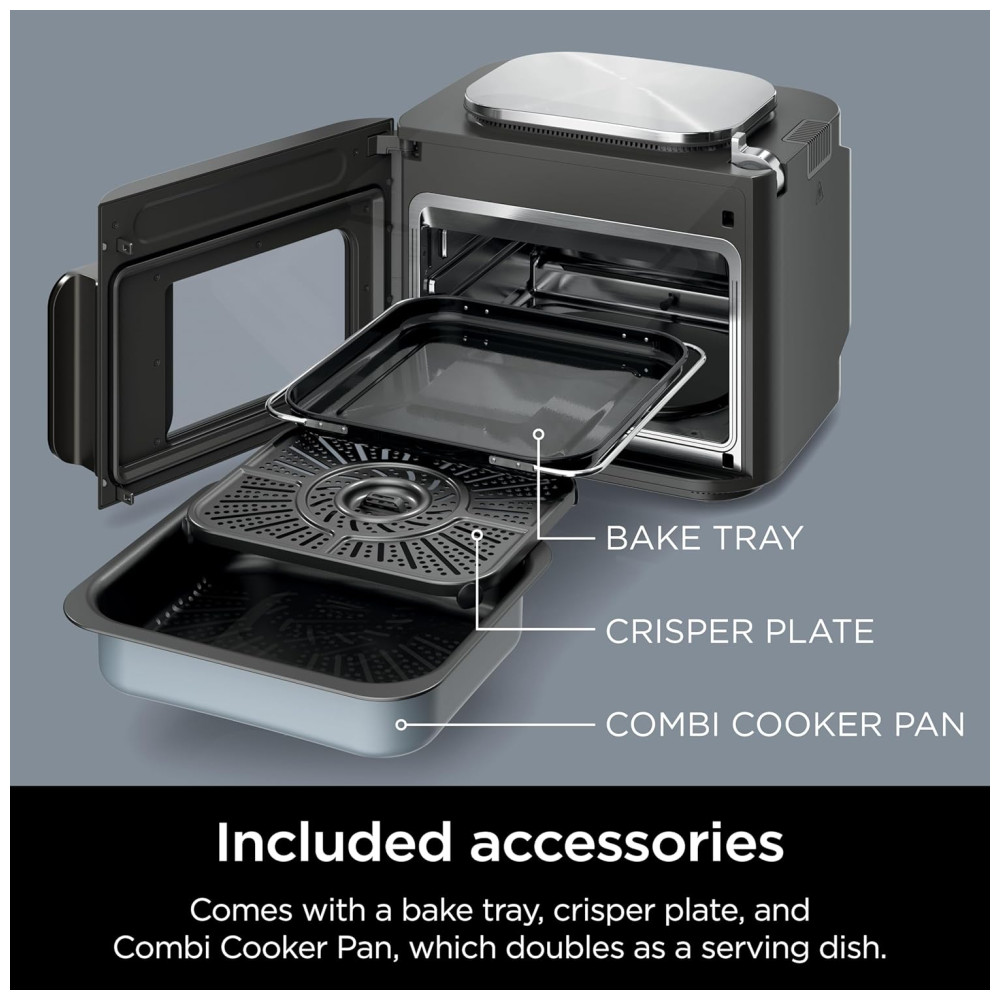 Componentes Incluídos: Panela Combi, Multicooker Ninja, Bandeja de Assar, Bandeja de Crisp