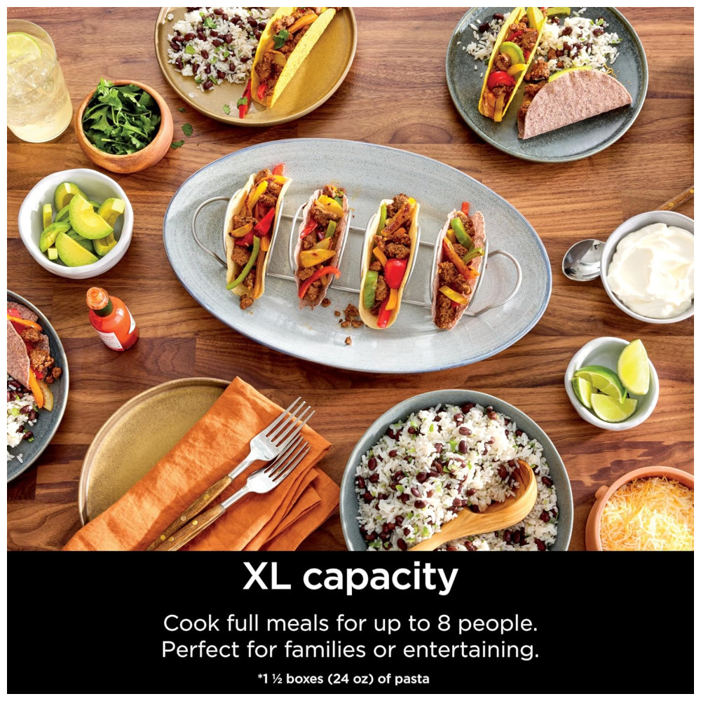 Capacidade Familiar: Perfeito para grandes famílias ou para receber convidados – alimenta até 8 pessoas e comporta 1,5 caixas (680g) de massa, 4 xícaras de arroz seco, um frango assado de 2,7 kg, 900g de batatas fritas, uma pizza de 25 cm ou um assado redondo de 2,3 kg.