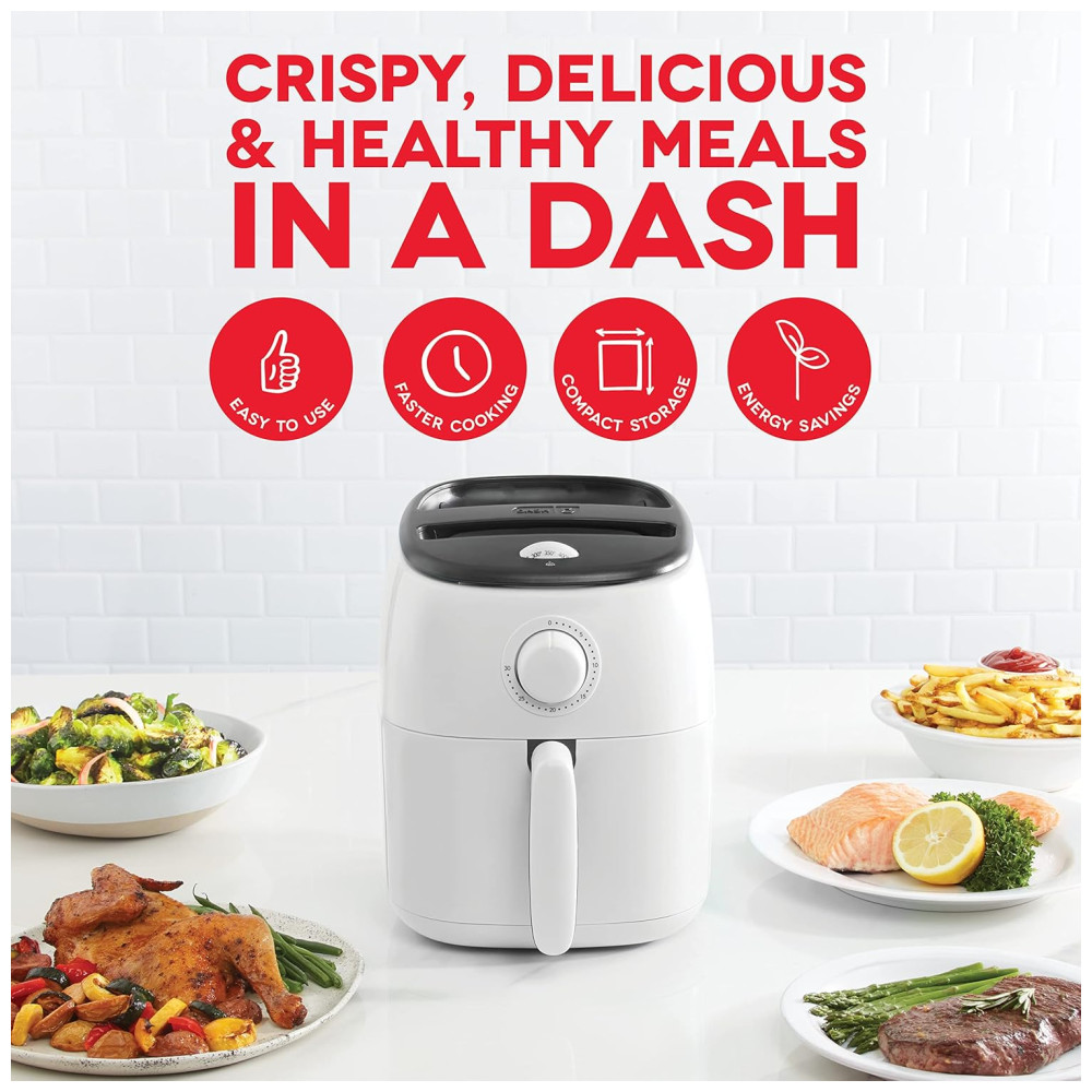 Fritadeira Elétrica DASH Tasti-Crisp Branca 25 L AirCrisp Antiaderente Compacta Timer Desligamento Automático 1000W Cesto Removível 110V