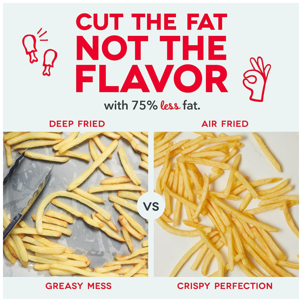 A fritadeira elétrica DASH Tasti-Crisp é desenvolvida para preparo rápido e saudável de alimentos como vegetais, batatas, aperitivos congelados e carnes. Utiliza tecnologia AirCrisp que circula ar quente, dispensando óleo e reduzindo gordura adicionada em até 80%. O design compacto com 2,5 litros de capacidade é ideal para cozinhas pequenas, apartamentos ou uso individual, permitindo armazenagem prática.