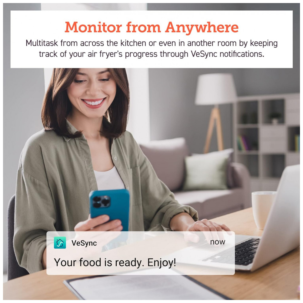 Notificações de Cozimento: Com o controle inteligente através do aplicativo VeSync, você pode receber notificações em tempo real sobre o cozimento, permitindo que você passe menos tempo na cozinha e mais tempo com a família e amigos.